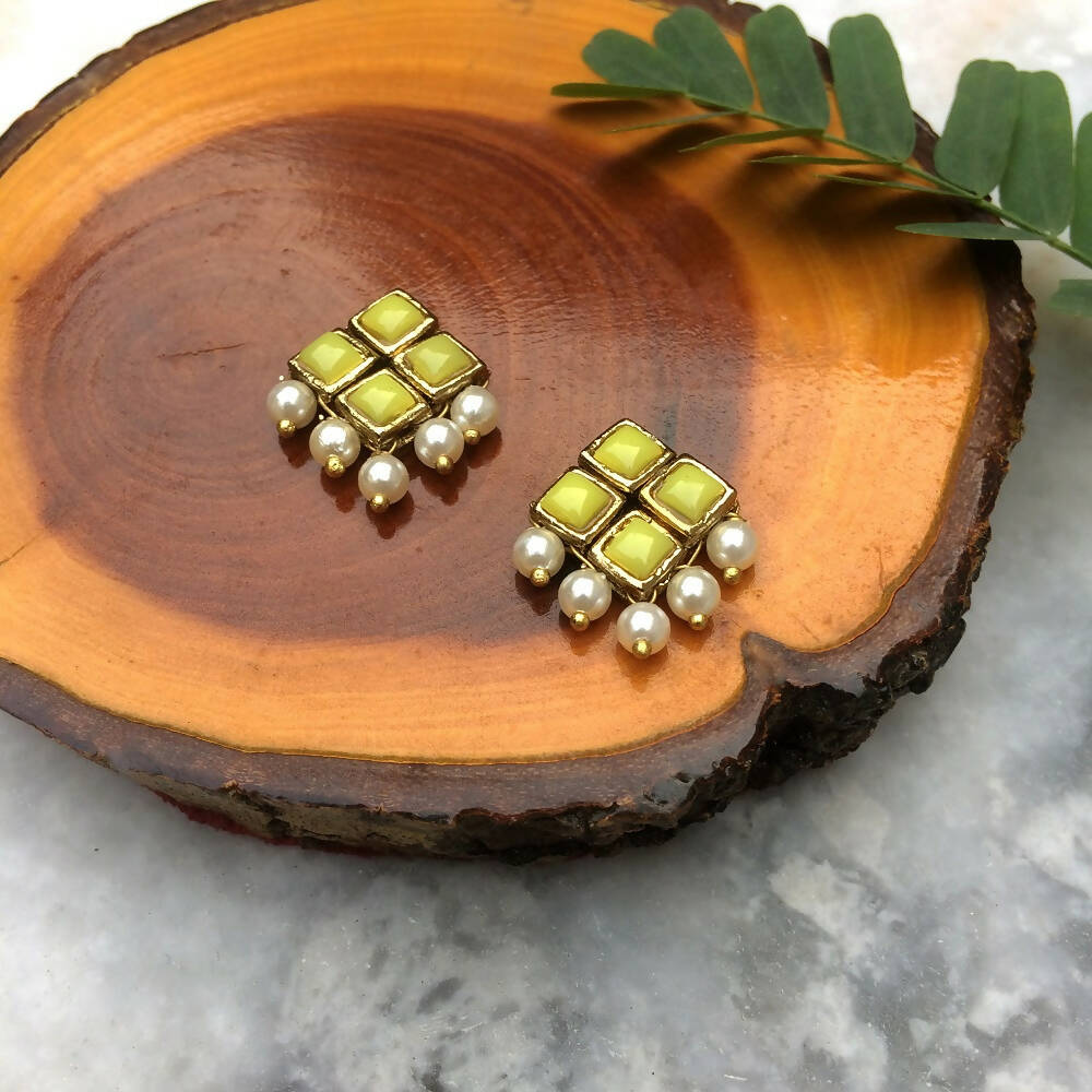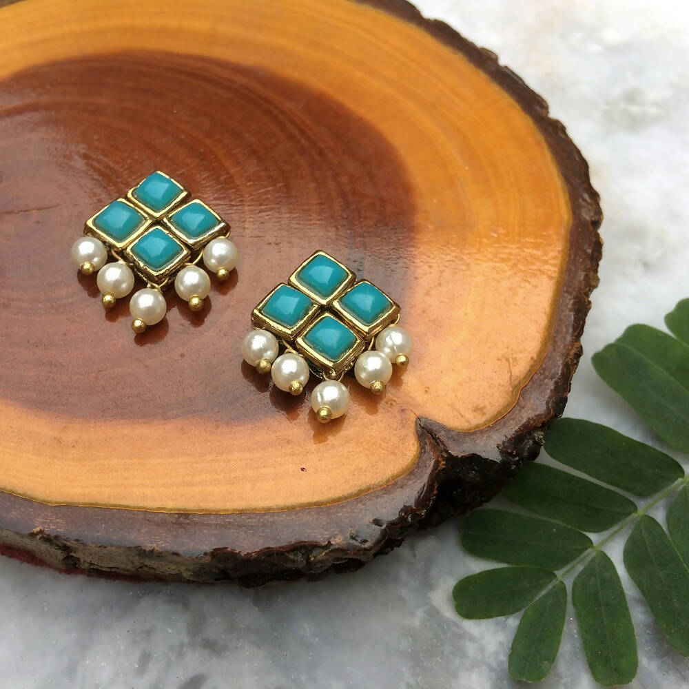 Resin Stone and Pearl Stud Earrings