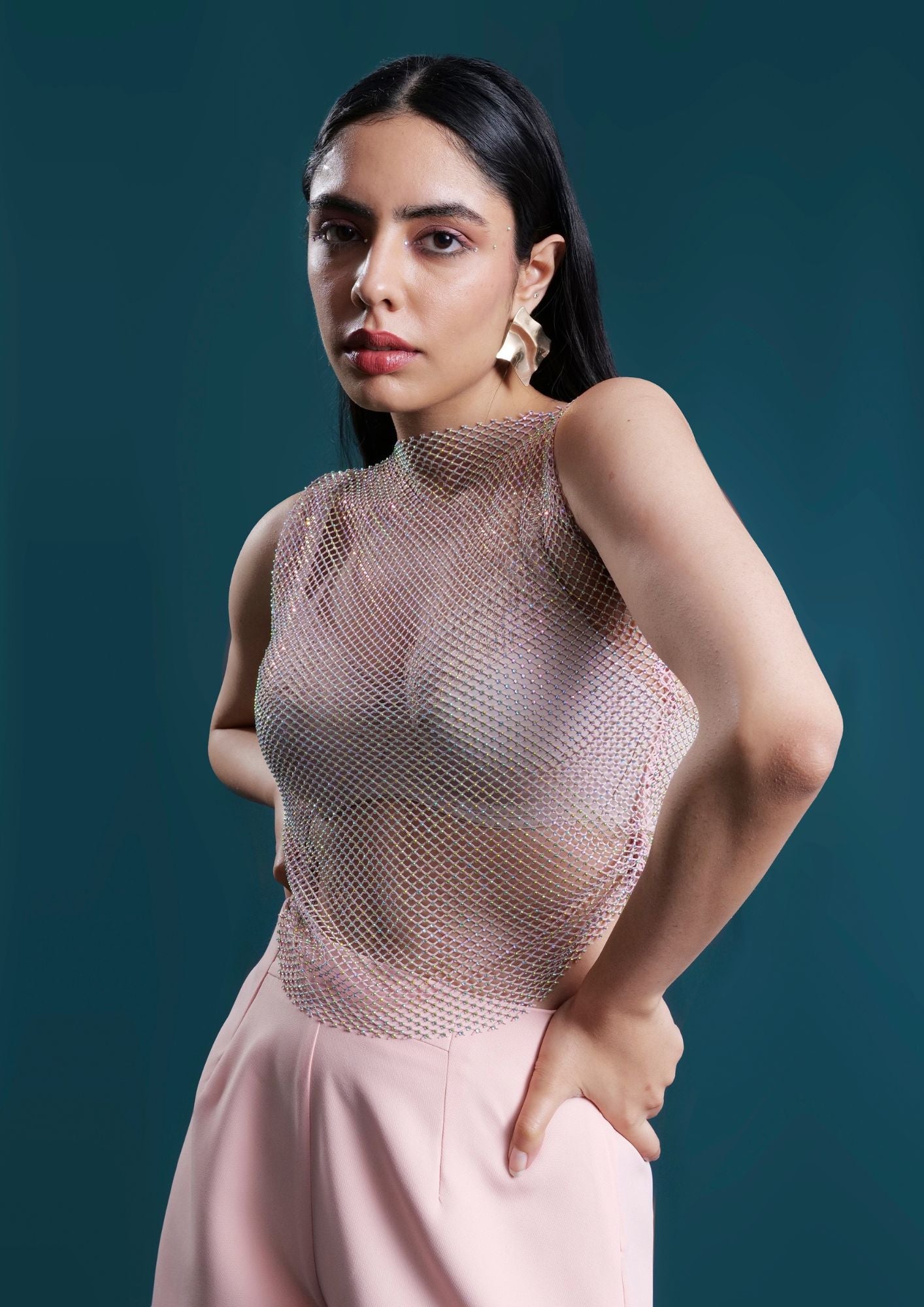 Shine bright in our sparkling rhinestone sleeveless top! With a chic high neck, double layer on the shoulder, and a flattering curved hemline with side gathers. Glam up any outfit effortlessly!