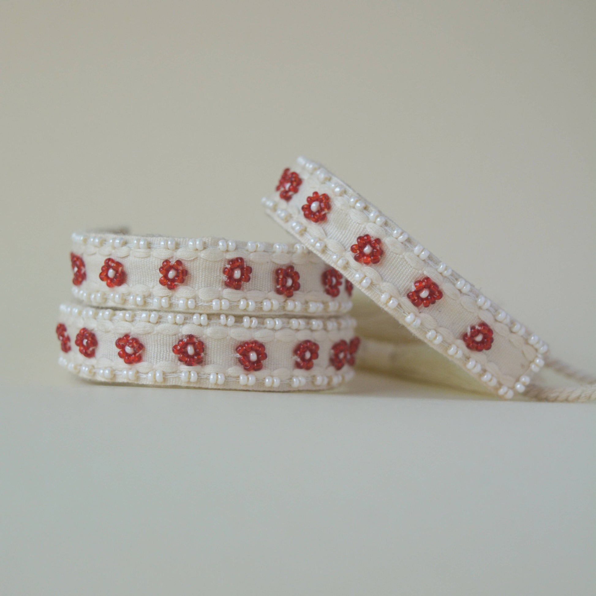 Color: Base - Ivory ; Beads - Red & off white