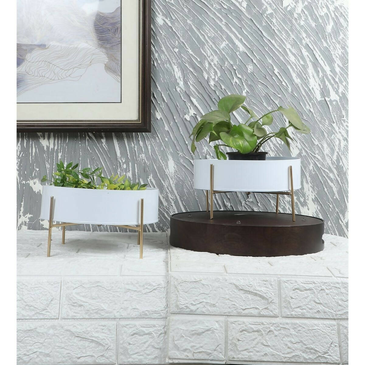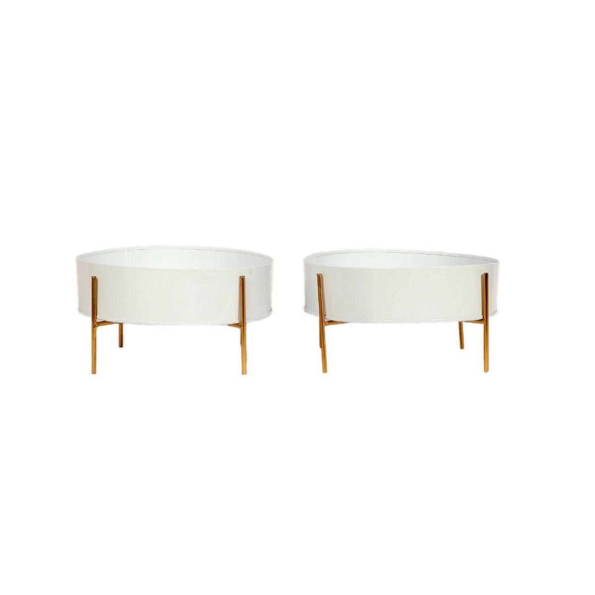 Round White & Gold Table Planter With Stand Set of 2