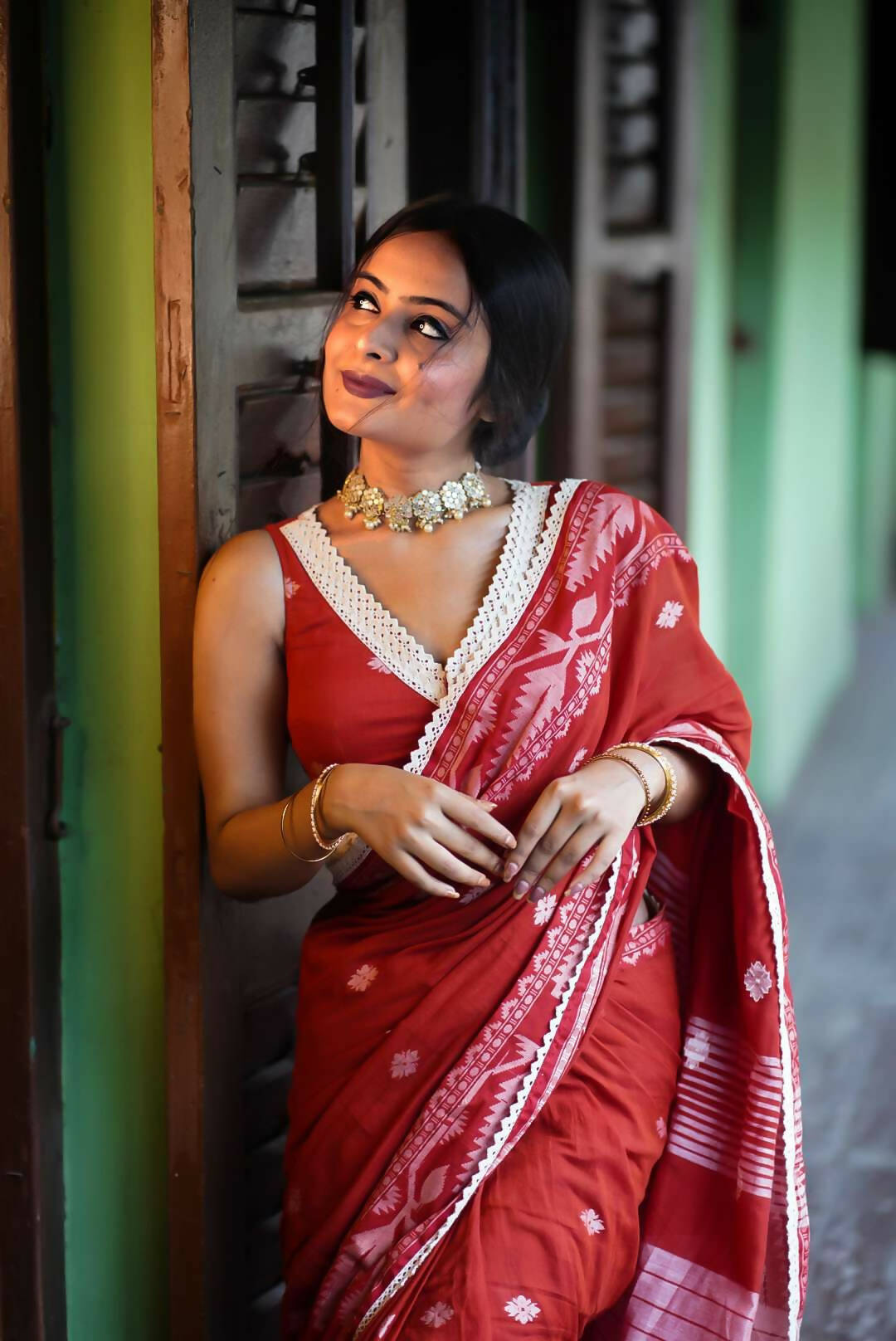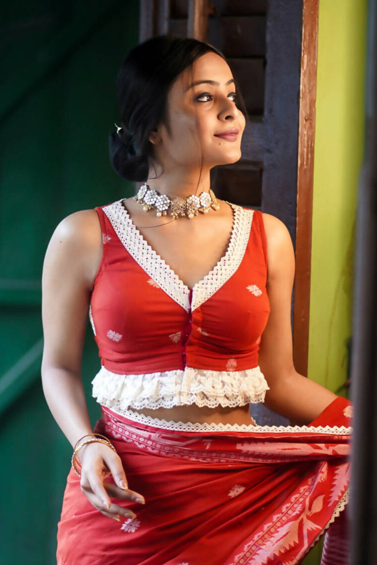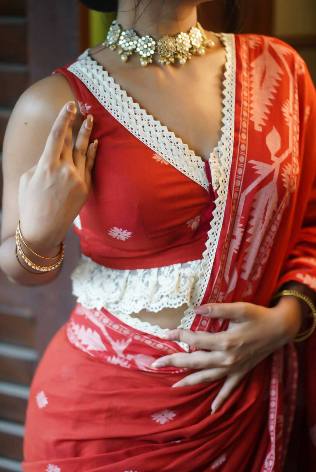 Elegantly designed to complement any saree, this blouse is a timeless fusion of tradition and style. And a perfect piece to add a statement to your attire! Pair it with a monotone saree or go all over by pairing it with a contrast saree. This one will surely will be a statement piece in your wardrobe.