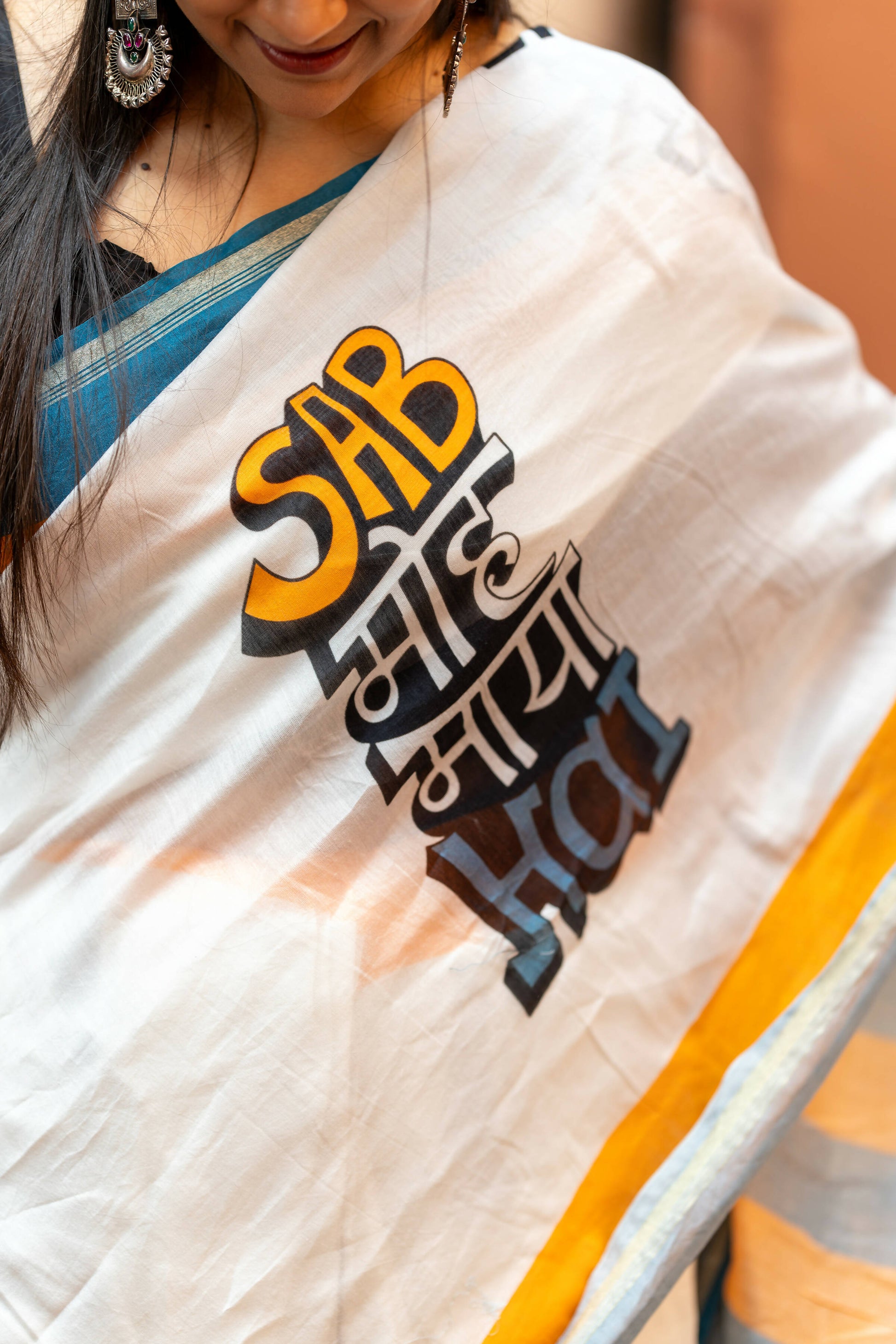 Sab Moh Maya Hai Quirky Print Chanderi Saree