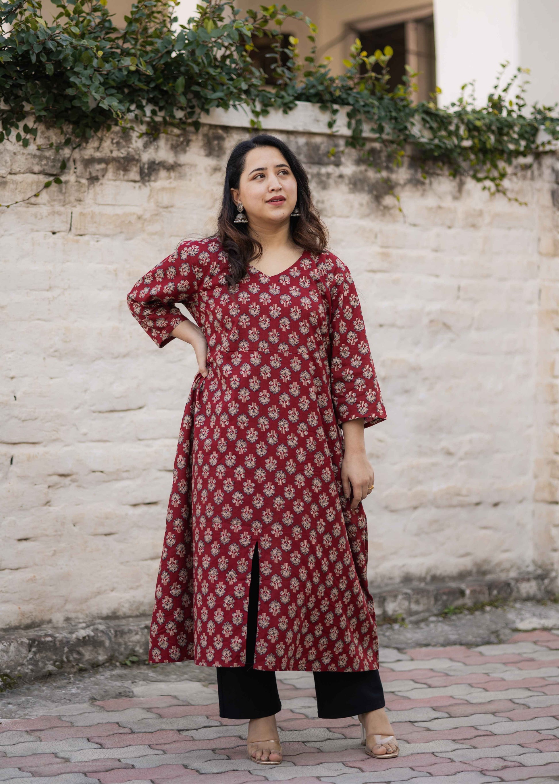 Elevate your wardrobe with this Sahitya A-line Long flared kurta, featuring vibrant floral prints and crafted from soft cotton fabric. Designed with a flattering Kali cut and convenient pockets, this kurta combines style and comfort effortlessly.