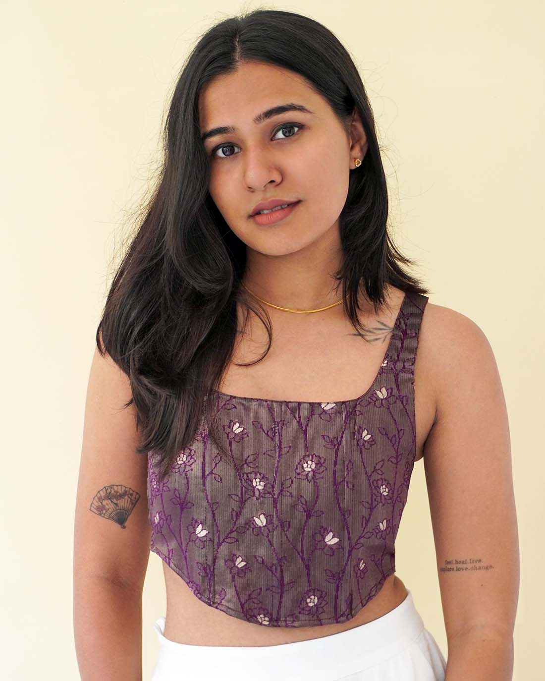 The Sangria Brocade Silk Corset is a statement of refined elegance and luxurious craftsmanship, designed to captivate with its rich texture and bold allure. Made from opulent brocade silk, this corset features intricate patterns that echo the grandeur of traditional artistry.