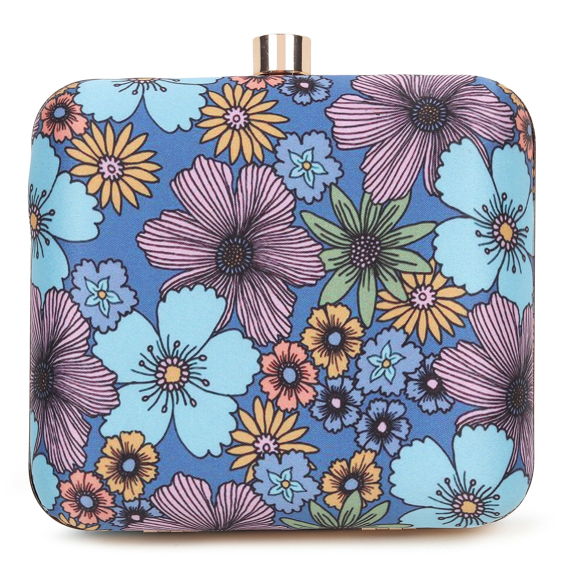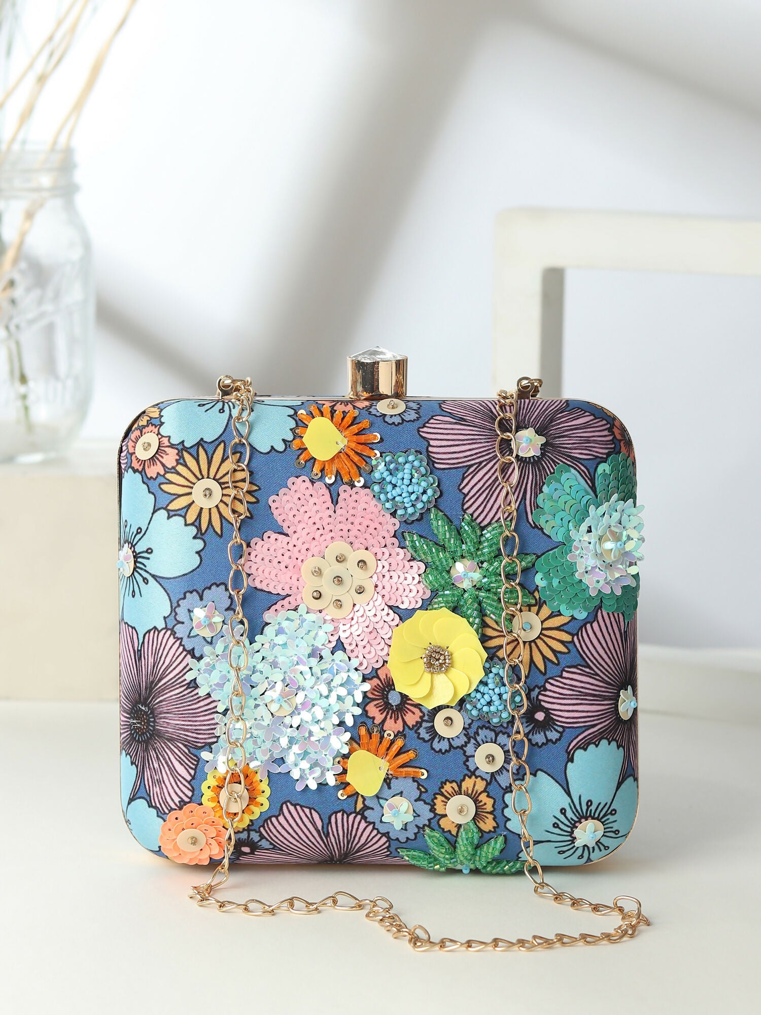 Sequin Accent Blue Floral Clutch