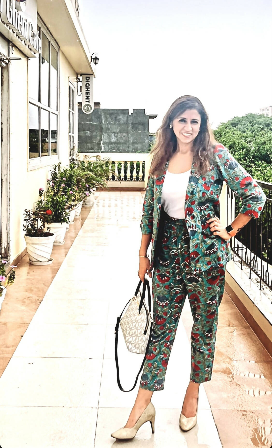 An eclectic Sea Green 2 pc Full Sleeves Blazer set with Pants. Pair it with your crop top or spaghetti or a classic white shirt- to suit your mood. White Inner is for reference only and is not included in the set. The Blogger Pictures are sometimes clicked using filters and are colour corrected- the actual shade is deeper than it appears.