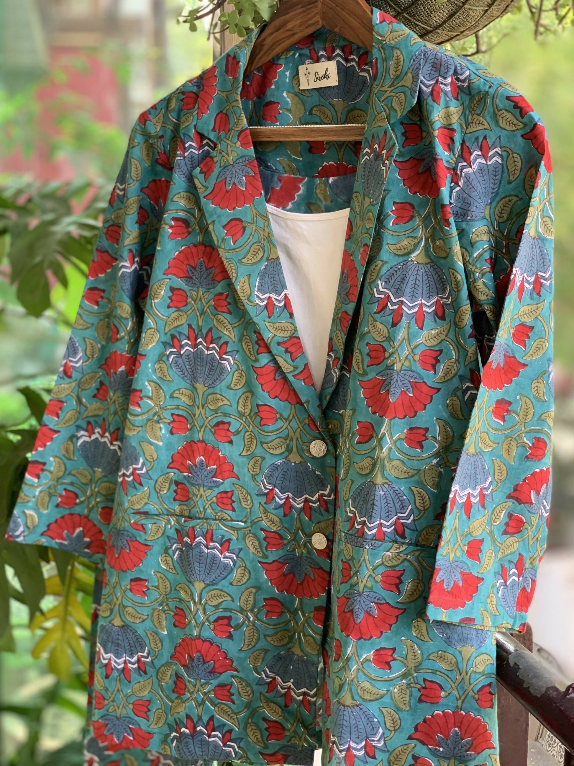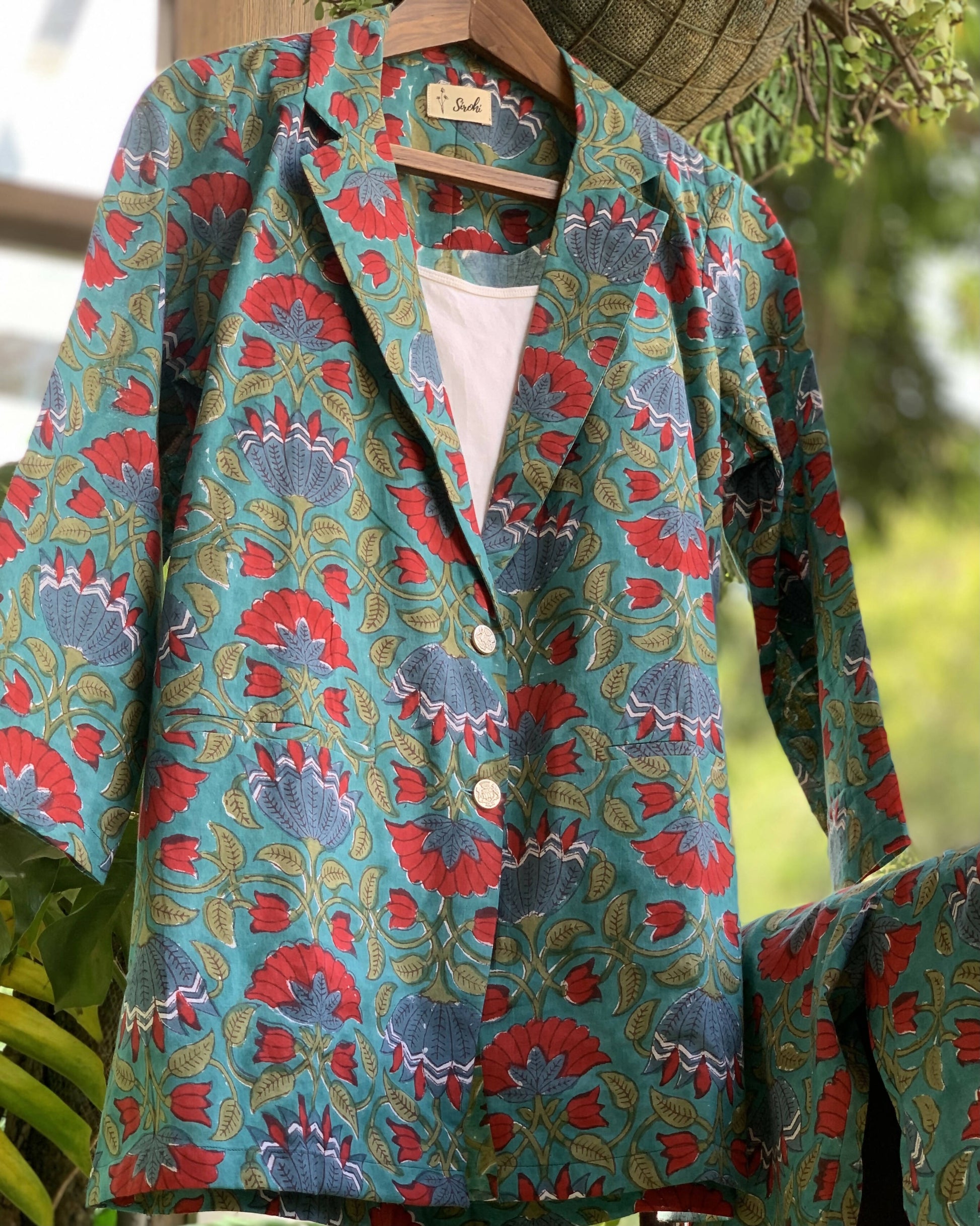 Natural-dyed colours might bleed during the first few washes or rub against the skin & other light-coloured garments. In this artful process of hand block-printing, colour variations are likely to come into existence due to different lots being printed over time. These irregularities are the hallmark of all handmade products and give each style a unique identity.