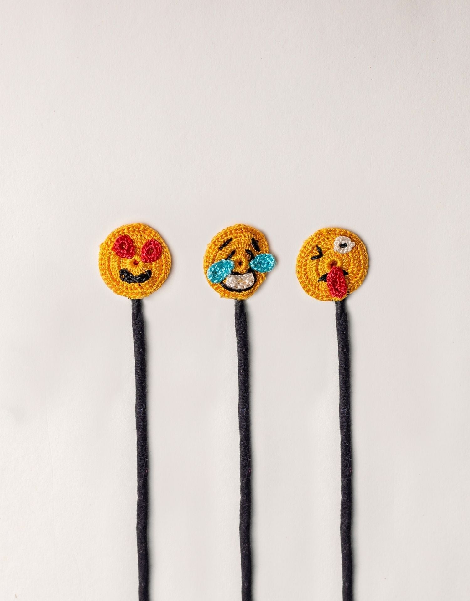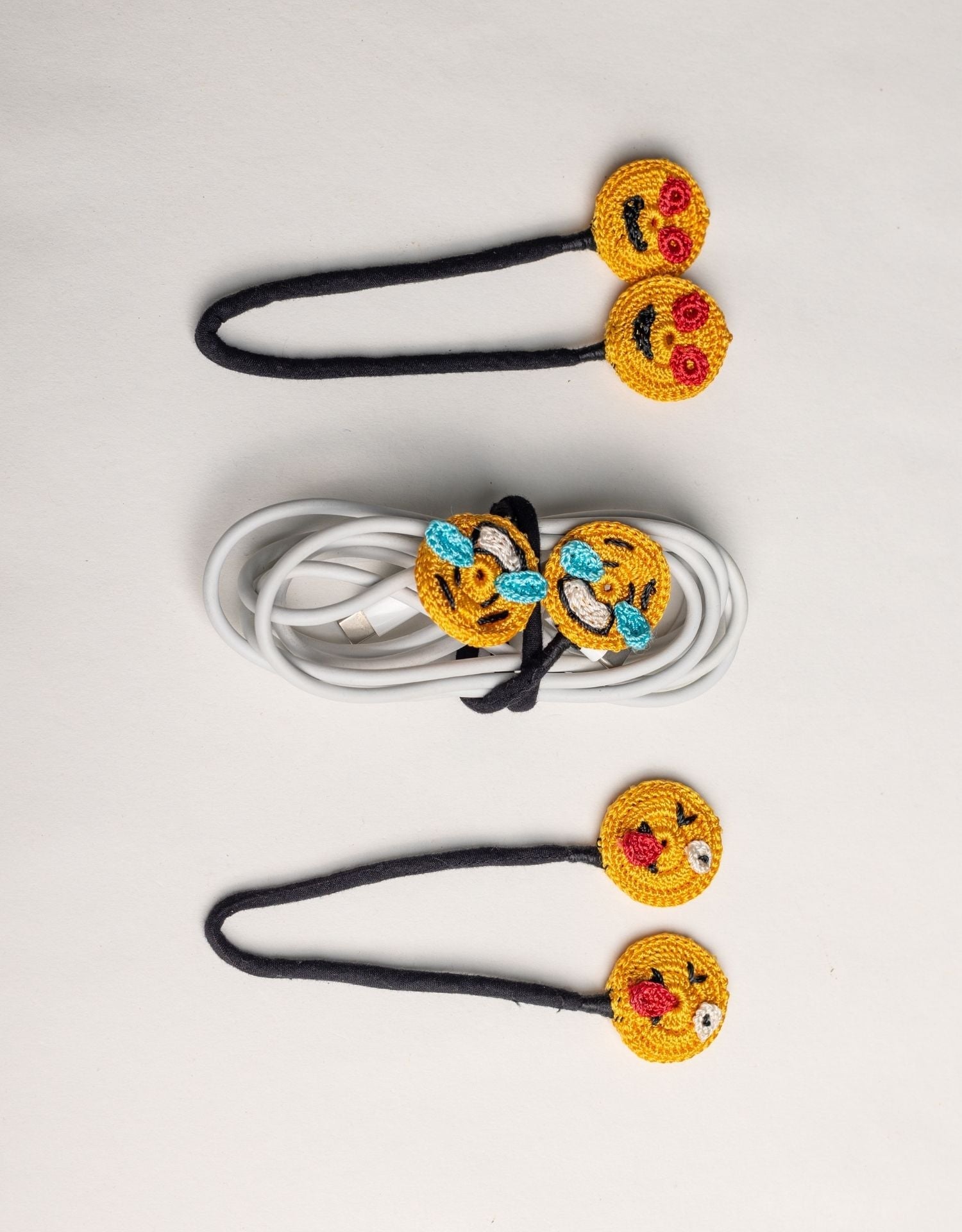 Set of 3 Handcrafted Cable Organizer - Emojis