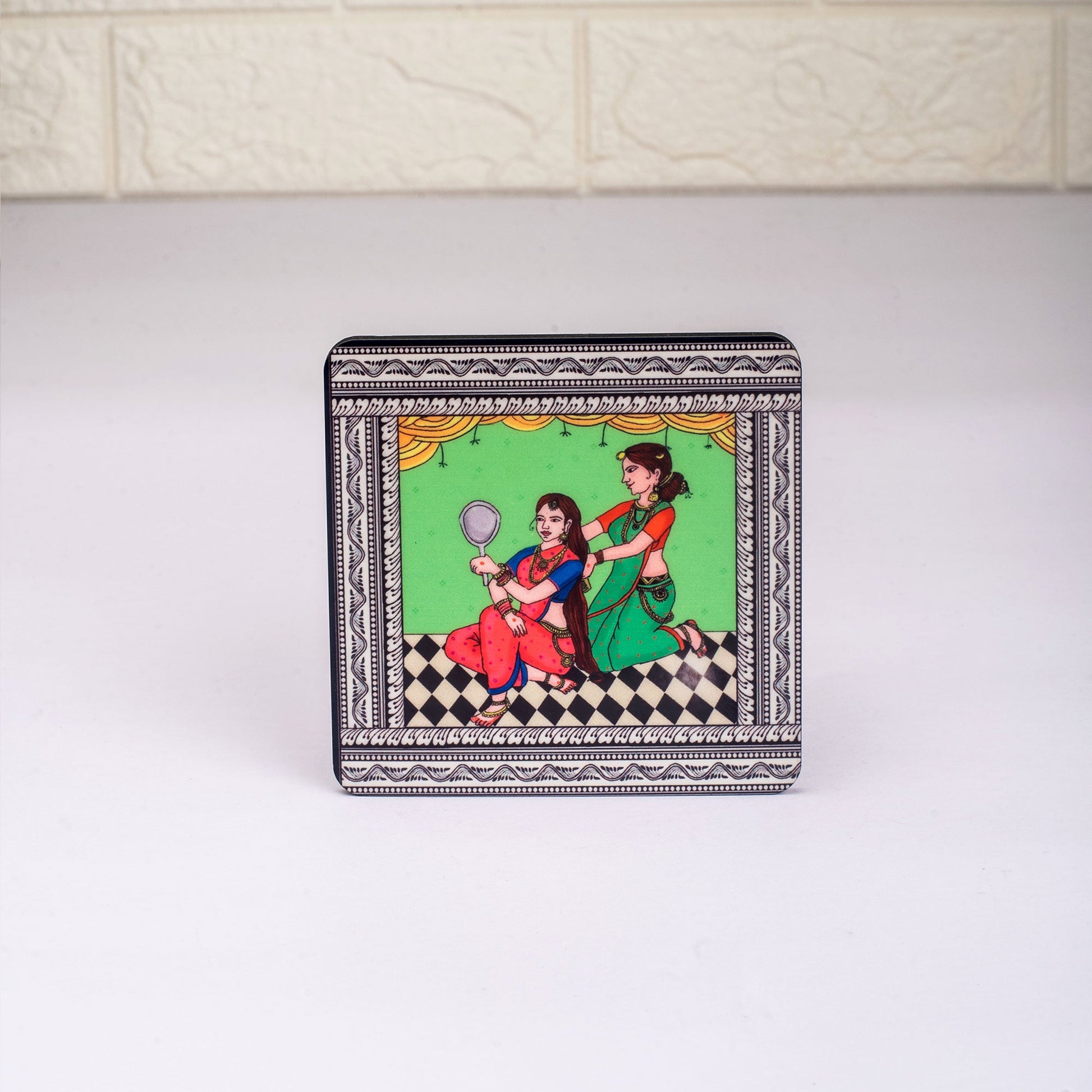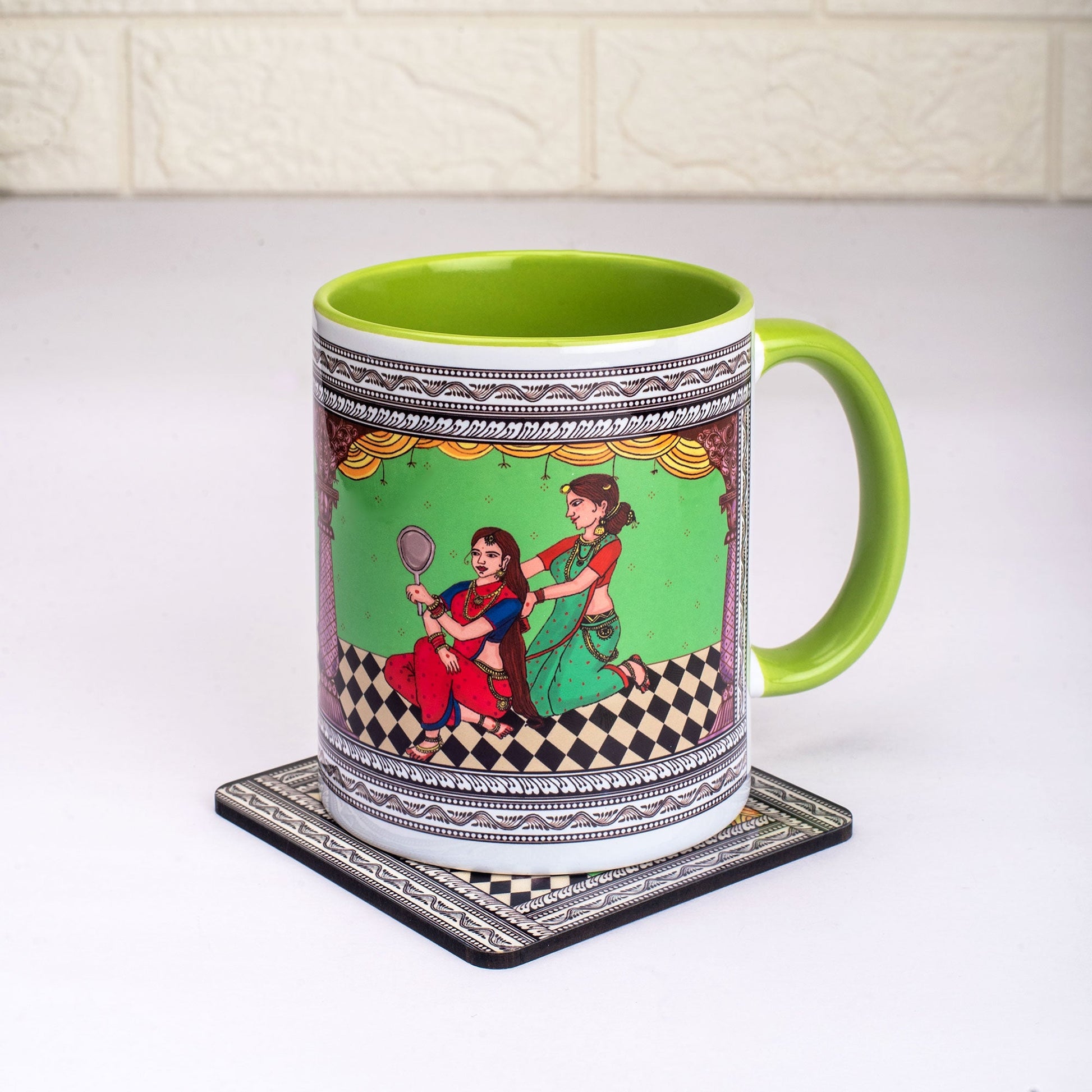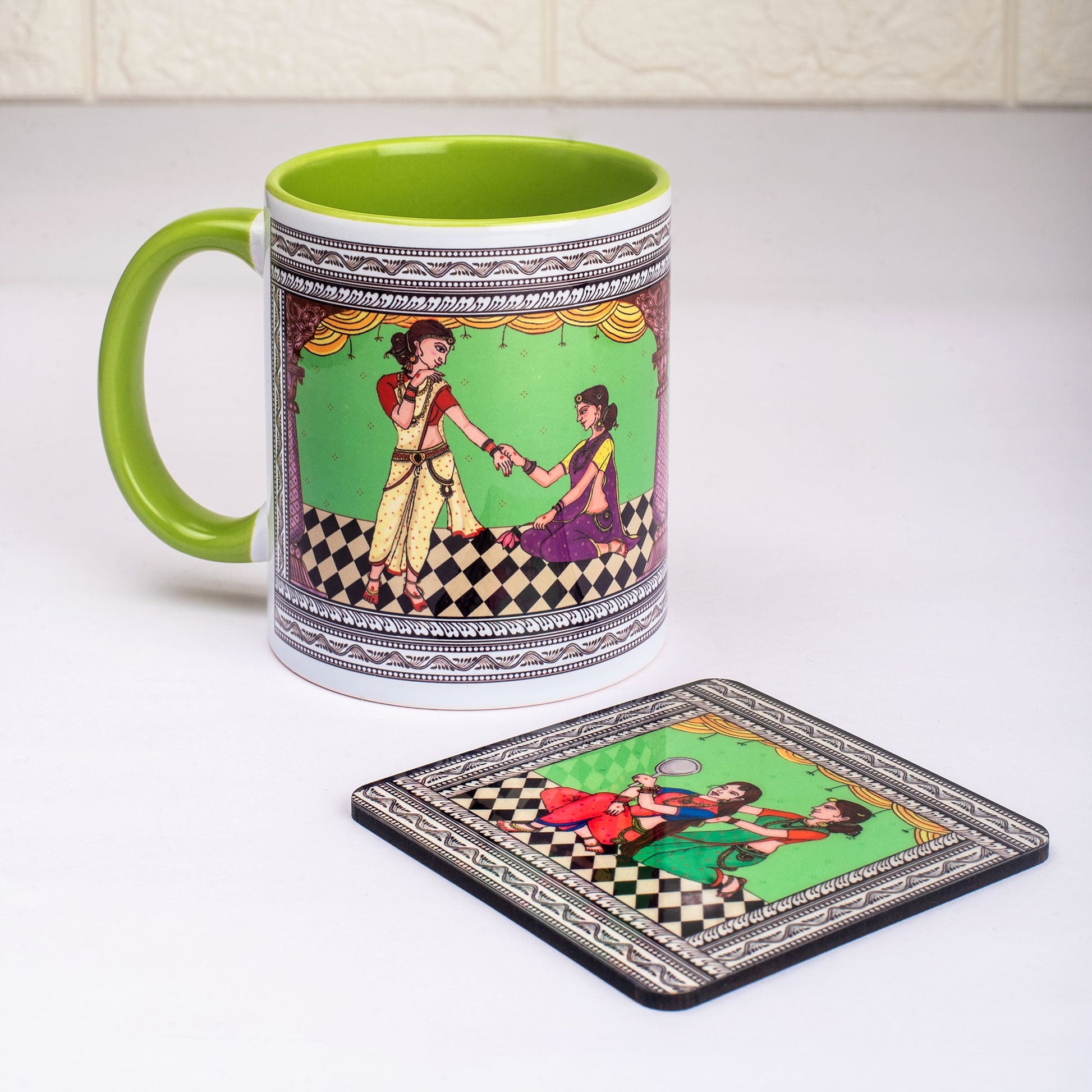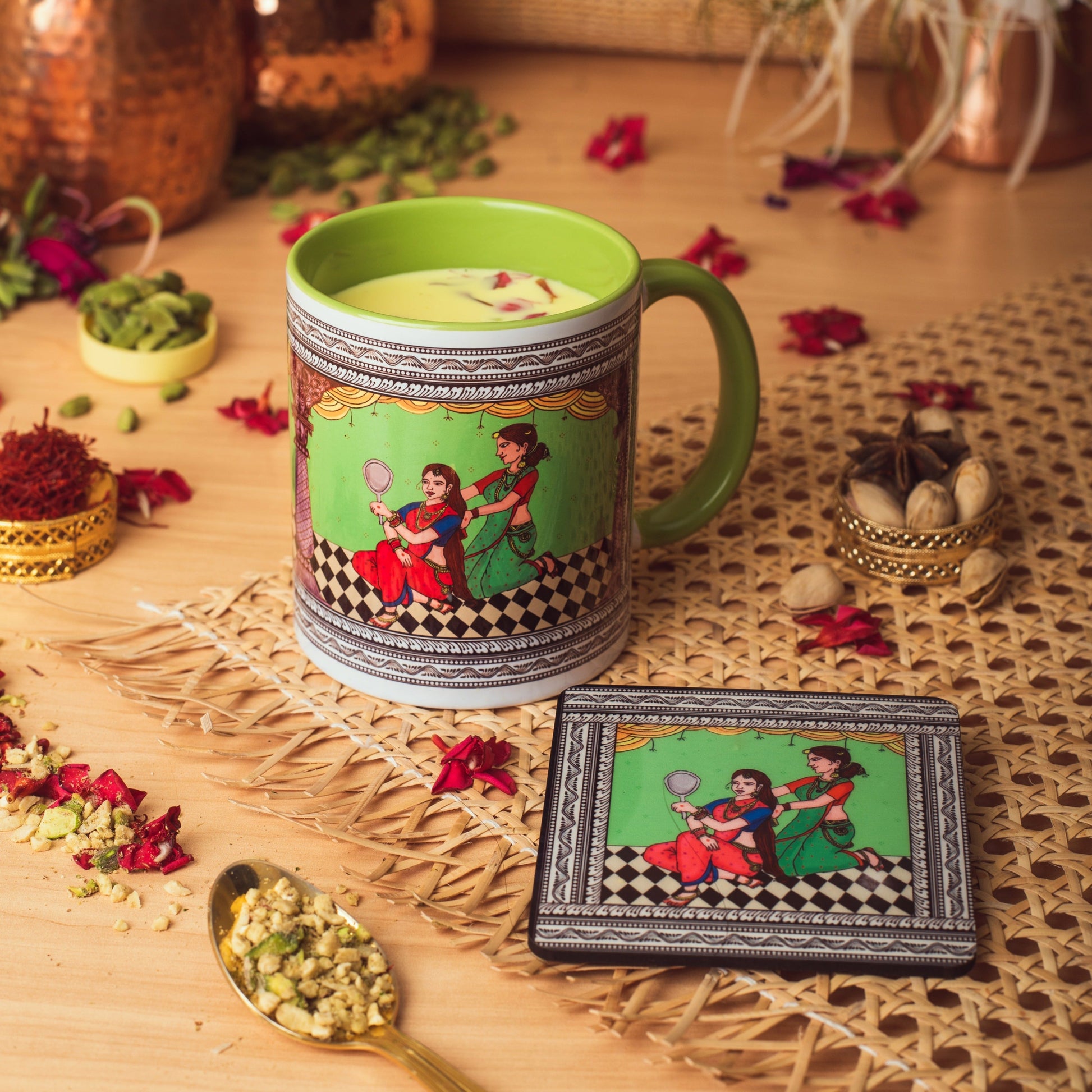 The Shringaar Pattachitra Mug and Coaster showcase a stunning design made with beautiful handpainted illustrations inspired by Indian artforms, celebrating the rich culture and heritage of our beautiful country! This design is a must-have and perfect for gifting to your loved ones!