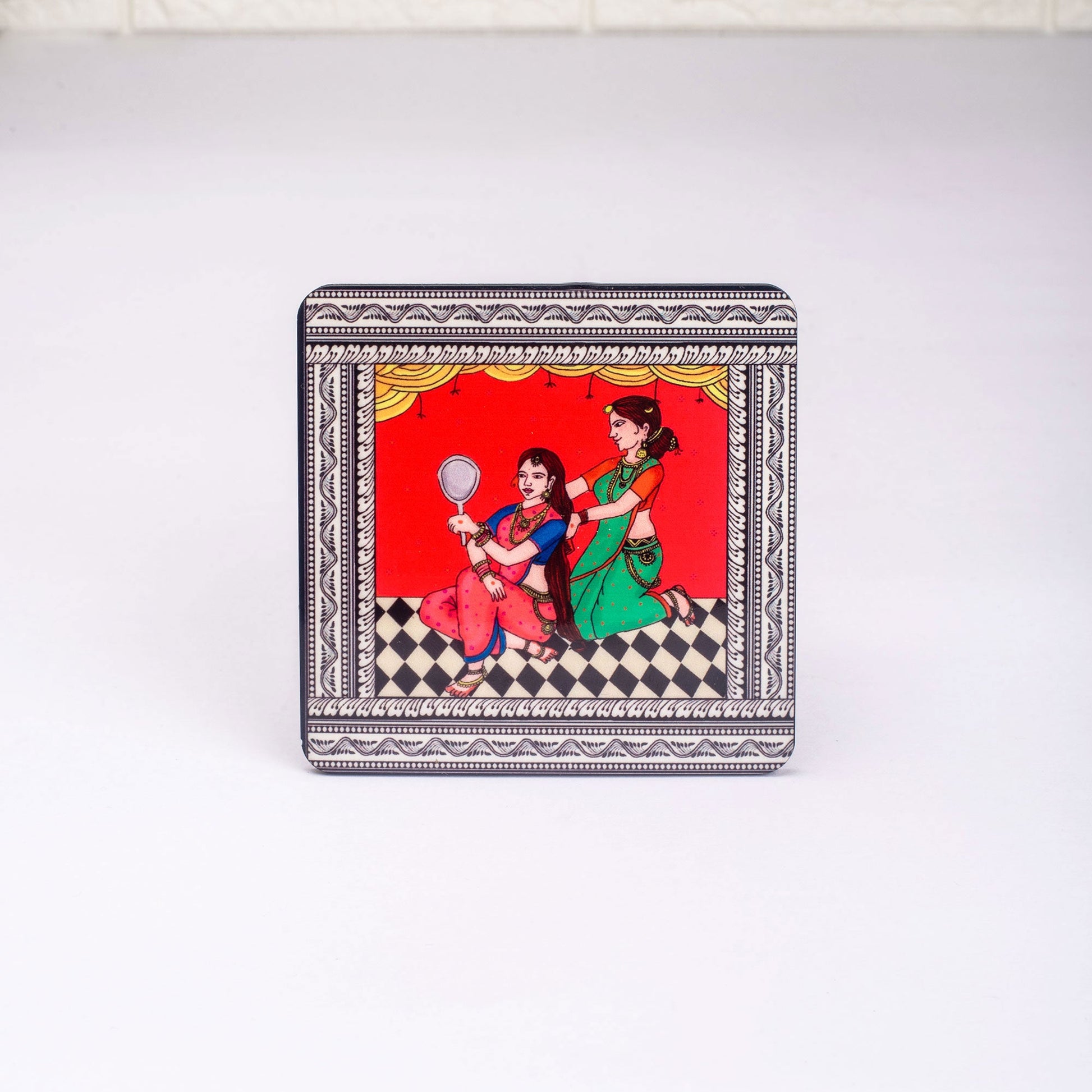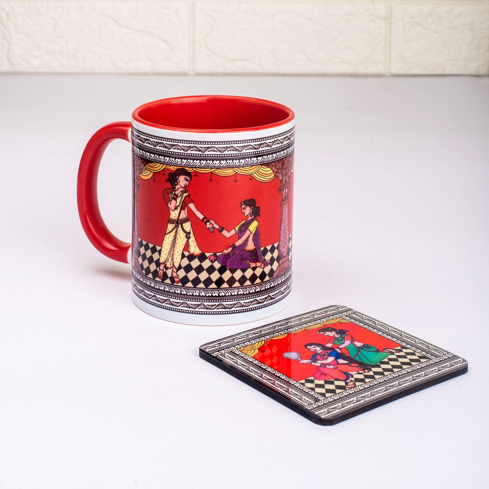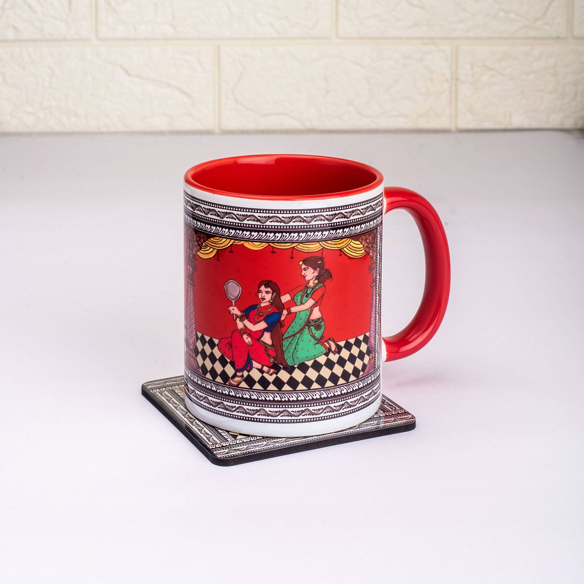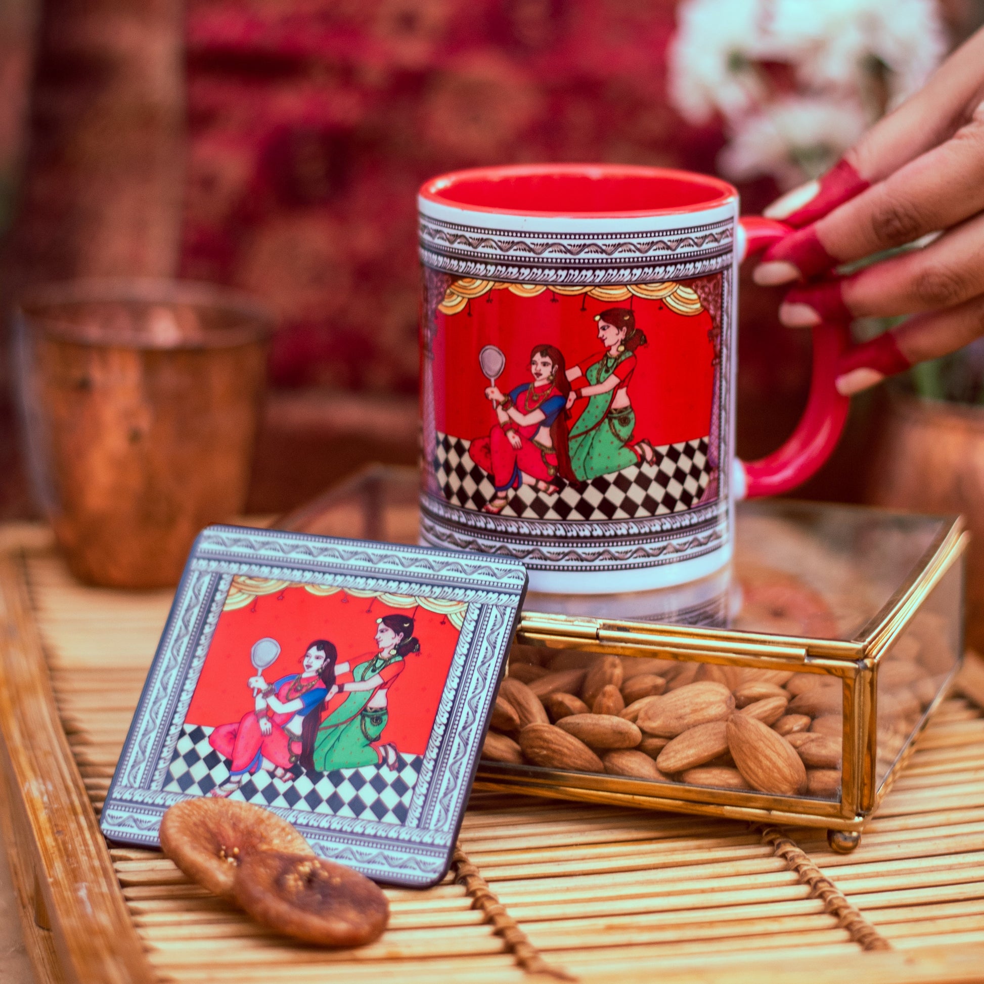 The Shringaar Pattachitra Mug and Coaster showcase a stunning design made with beautiful handpainted illustrations inspired by Indian artforms, celebrating the rich culture and heritage of our beautiful country! This design is a must-have and perfect for gifting to your loved ones!