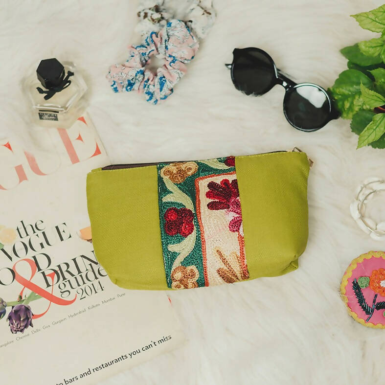 A beautifully handcrafted Pouch is perfect to fit in your accessories. From make-up, to tech accessories, to stationery, it all fits!
