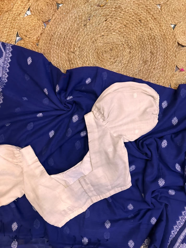 Materials: Handwoven cotton and has lining for body and has off-white jamdani motifs work