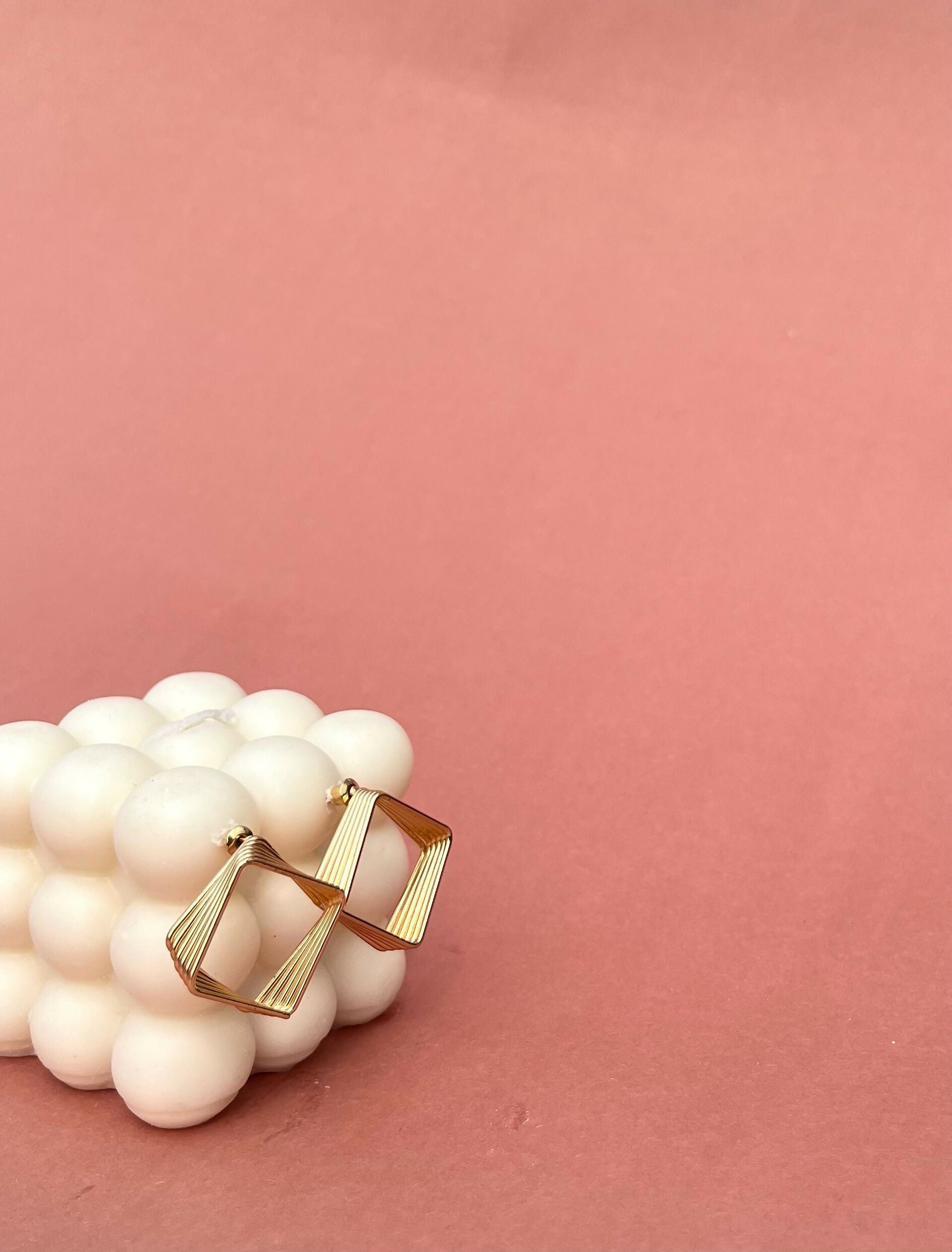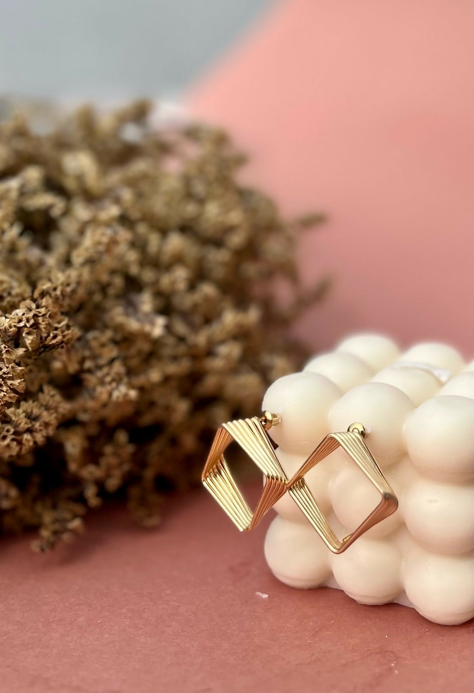 Gorgeous square gold hoops with a twist! Eye-catching design adds flair to any outfit. Versatile and chic, perfect for everyday wear or special occasions.