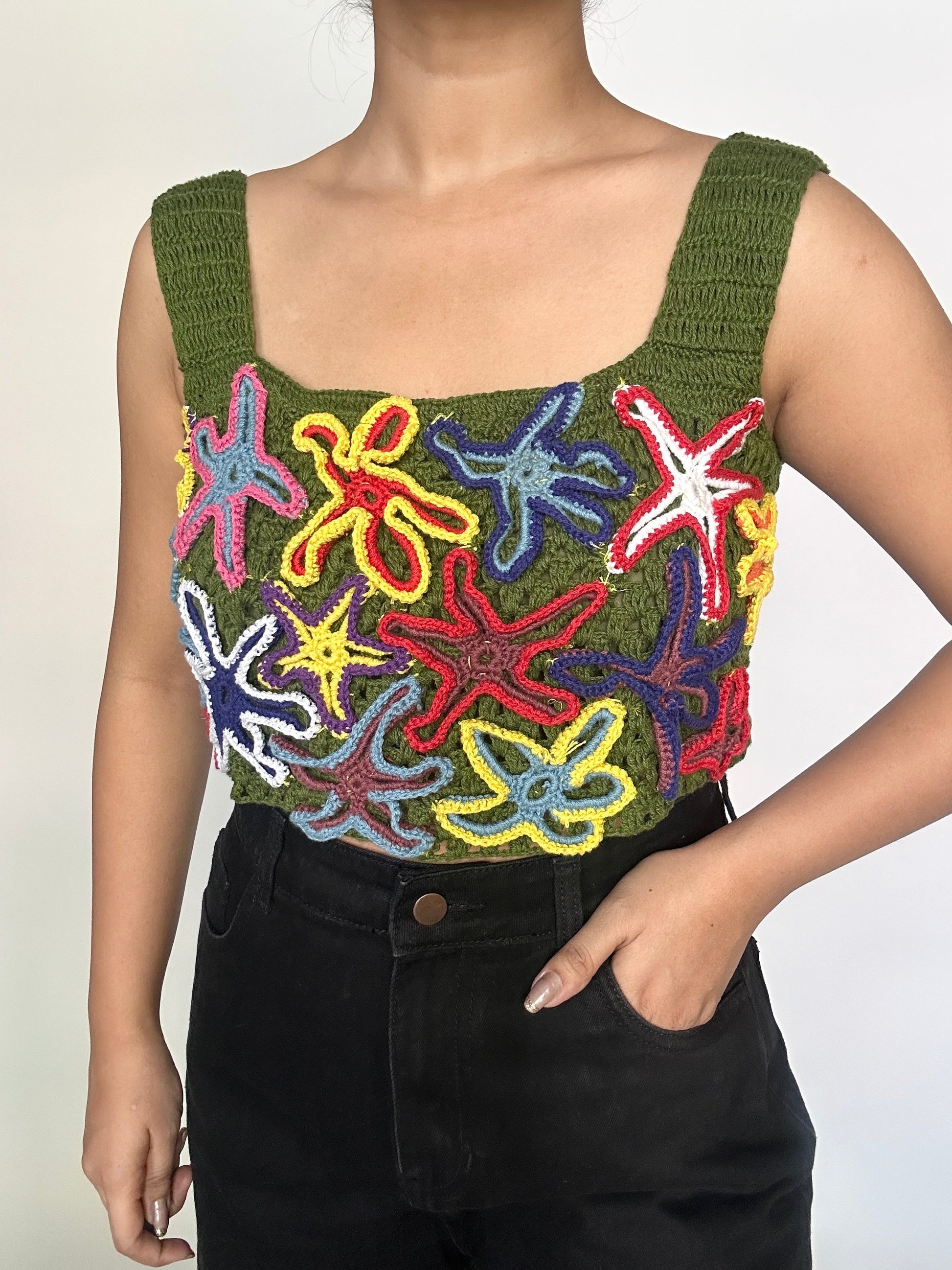 Stay cool and stylish this summer with our handmade starfish crochet top. Perfect for your summer collection, this top is lightweight and designed to keep you comfortable all season long. Stand out from the crowd with this unique and beautiful top.