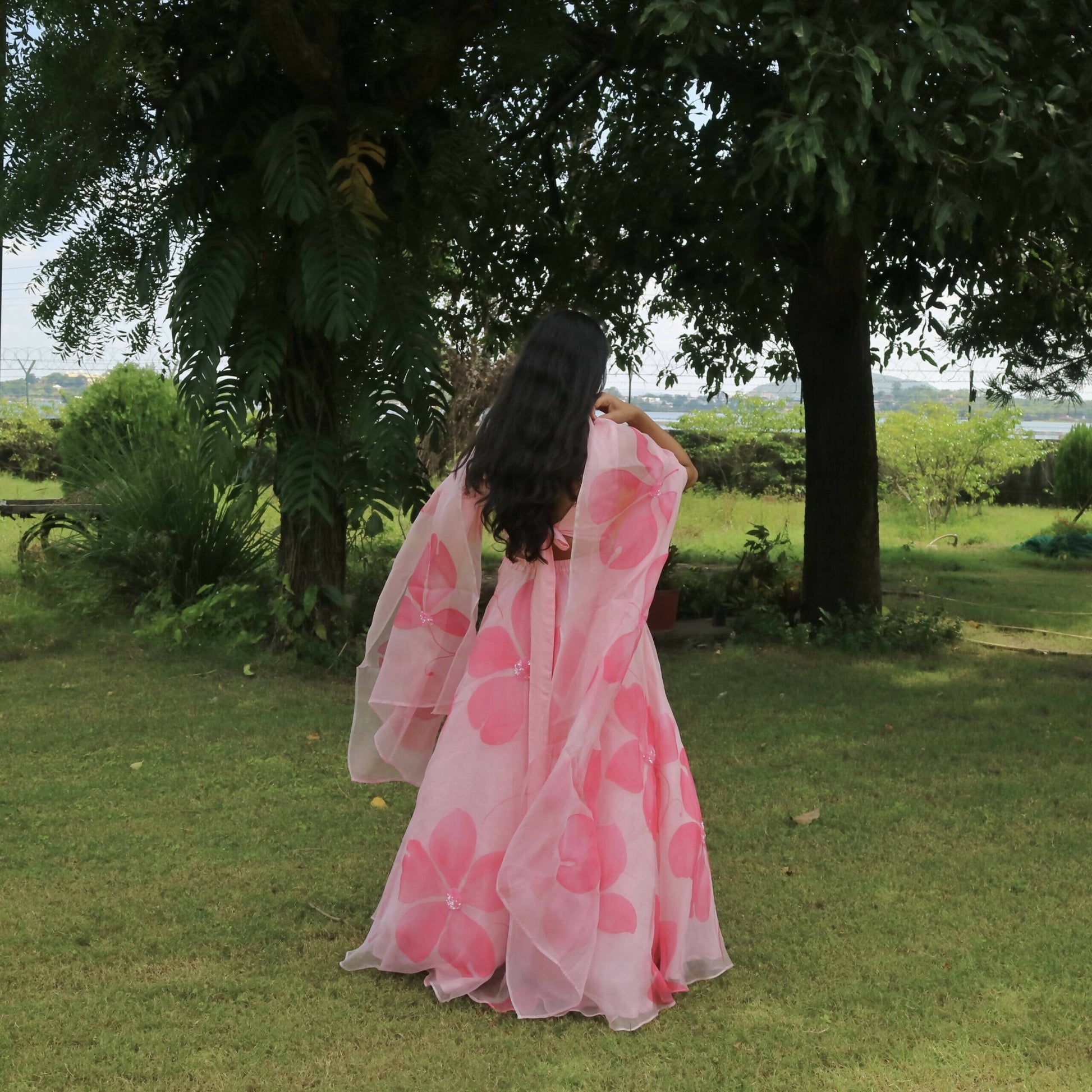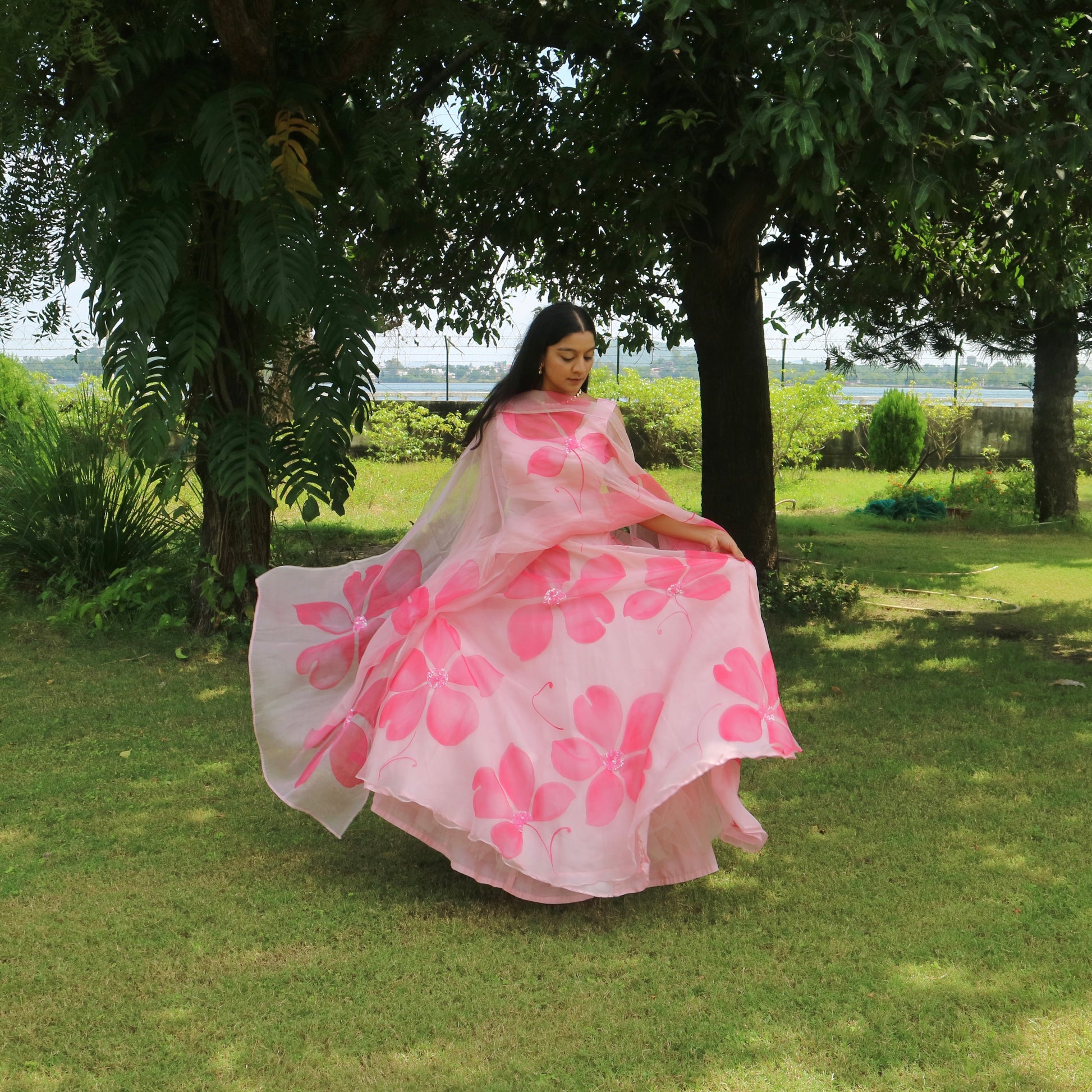 Materials: Lehenga & dupatta- Pure organza, Blouse piece- Modal silk