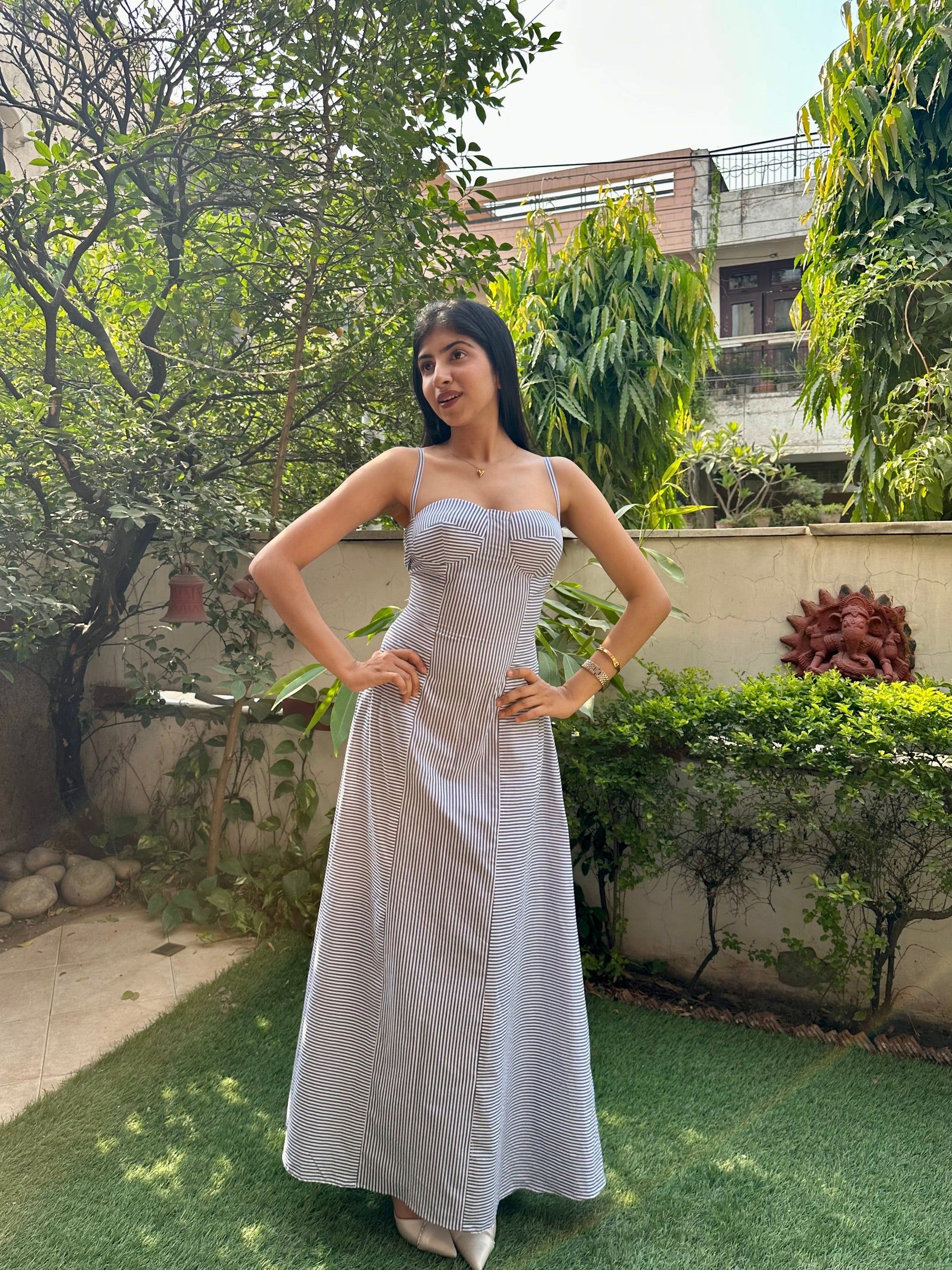 The Stripe and Hype Dress is your effortless everyday classic—with just the right edge. Featuring clean vertical stripes, a flattering structured bodice, and a breezy A-line silhouette, it’s made for sun-soaked brunches, city strolls, and everything in between. Easygoing yet polished—this one does it all.