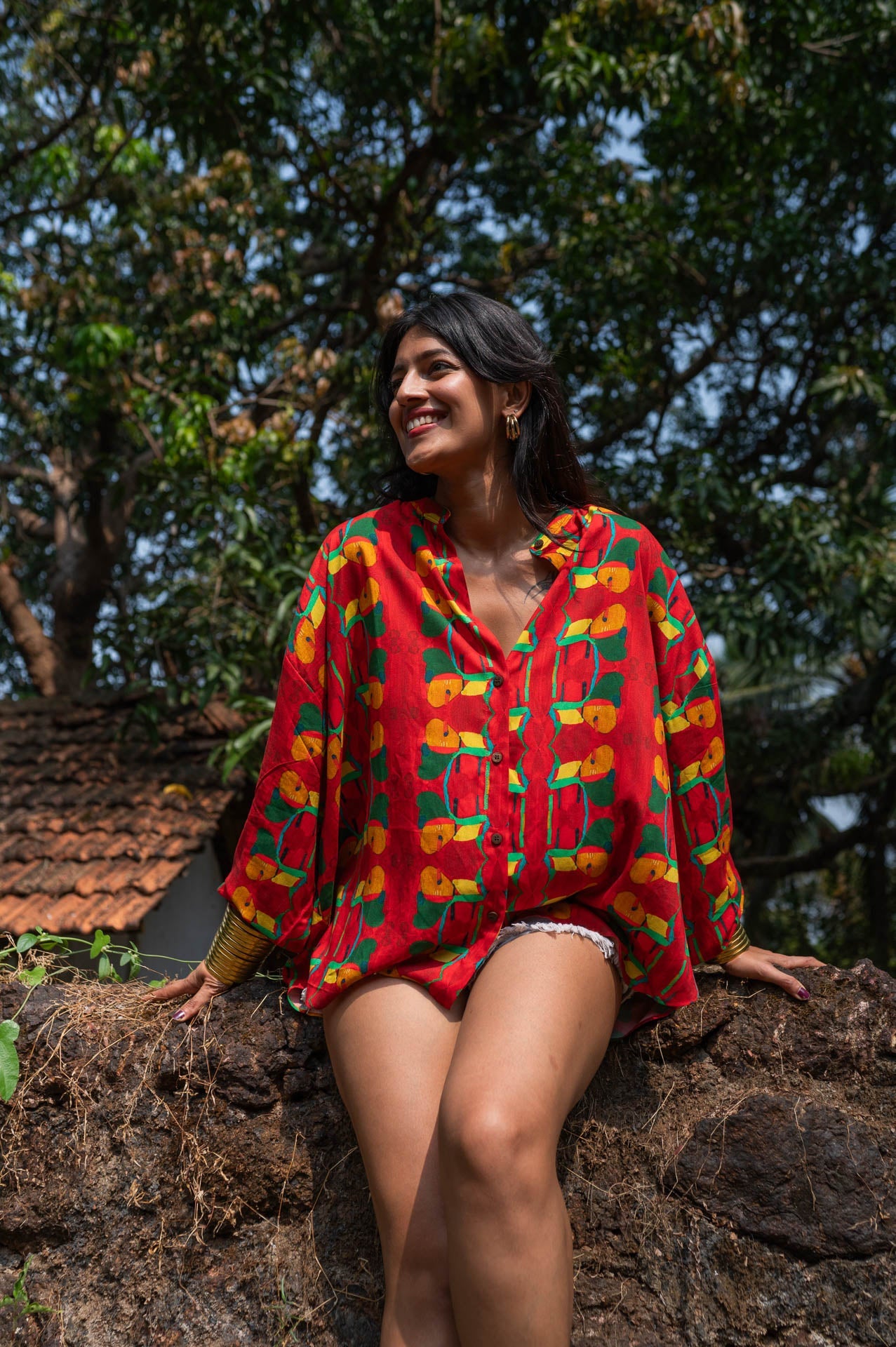 The original Hot Sauce dress has been wildly loved and why must a good print not become a shirt too? This yummy, fiery, abstract red and green print is literally like wearing an artwork! Crafted in a free-flowing silhouette with elasticated cuff, this top screams comfy and is a straight up party fave. No questions, we're pairing this with some unabashedly loud gold jewellery!