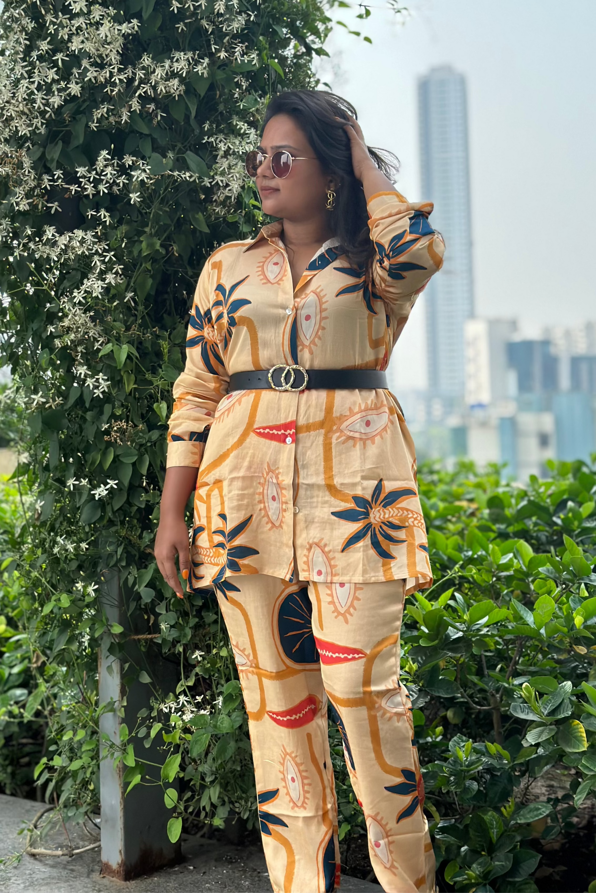 A perfect combination of style and comfort! Step into a dreamy garden or a pleasant shoreline with this gorgeous co-ord set that will make heads turn wherever you go. The lightweight and breathable fabric ensures maximum comfort throughout the day, making it an ideal choice for both casual outings and special occasions.