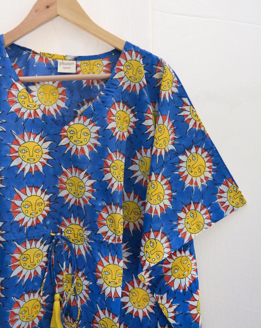 This handcrafted toptaan (short kaftan) is soft, breathable, and light, offering a sense of freedom and comfort. Perfect for enjoying your own company while reading a book in your favorite spot at home. Featuring beautiful handblock printing, it’s made from 100% soft cotton for a cozy, luxurious feel.