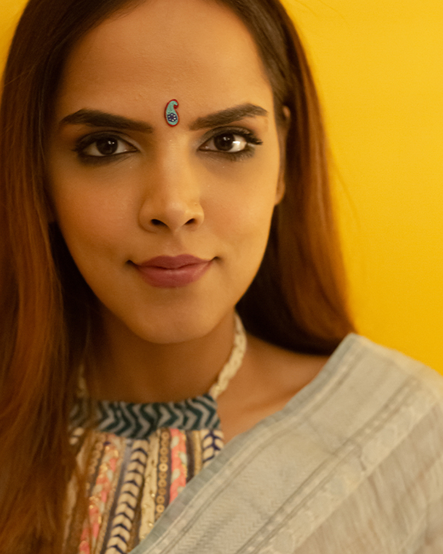 Materials: Organically dyed beads and cutdana, Mirrors and Metal Elements, Anchor and Resham Threads on Fabric