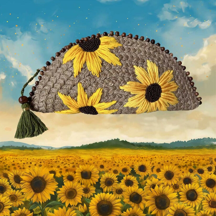 Allow nature's beauty to shine through and add a pop of sunshine to your wardrobe with the Sunflower Meadow half moon clutch bag. It's the essential accessory for summer style with ease.