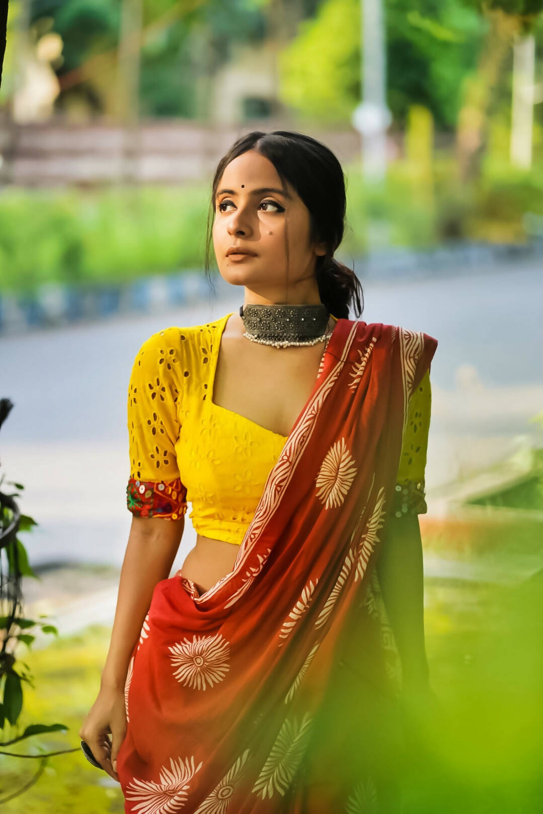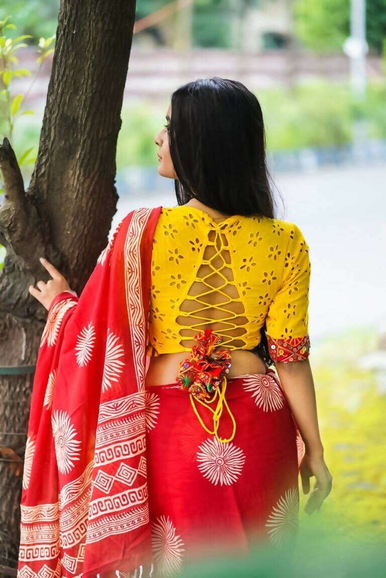 Elegantly designed to complement any saree, this blouse is a timeless fusion of tradition and style.