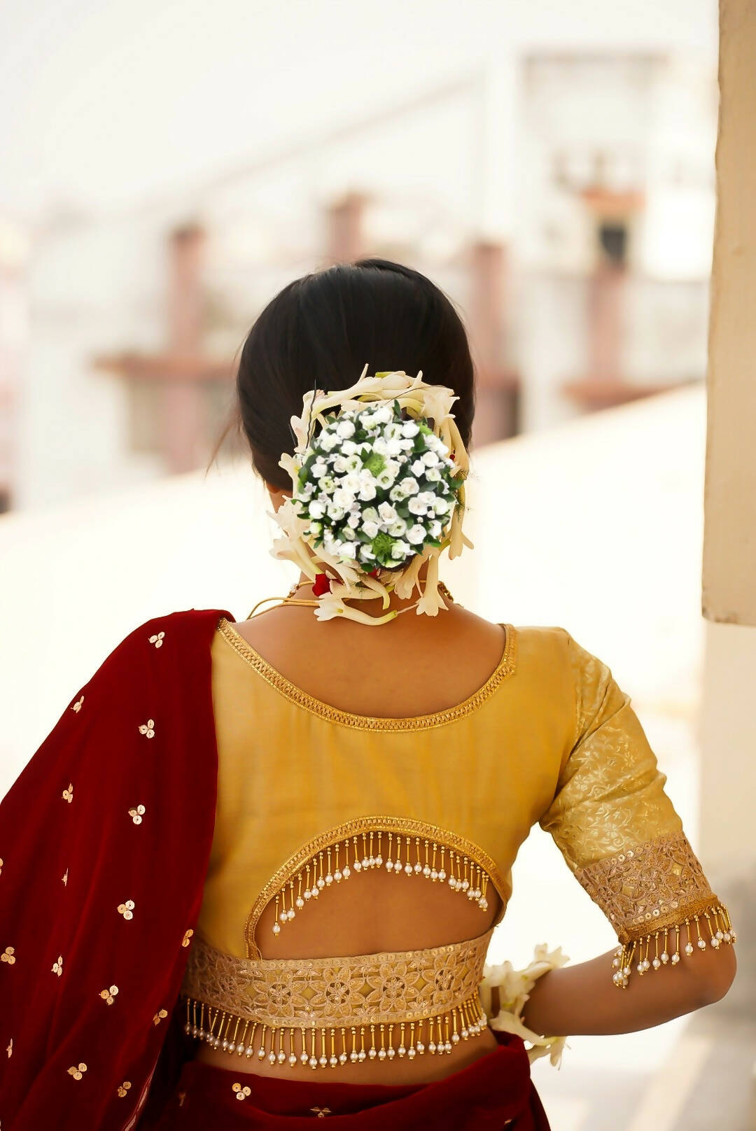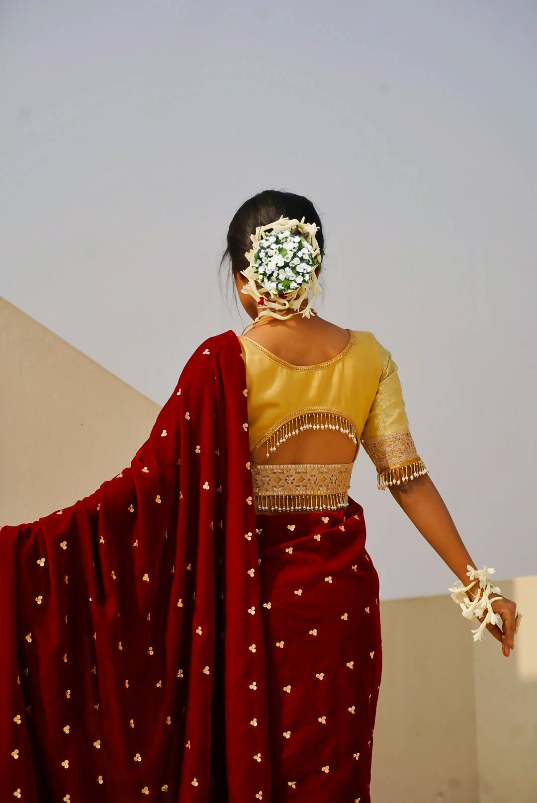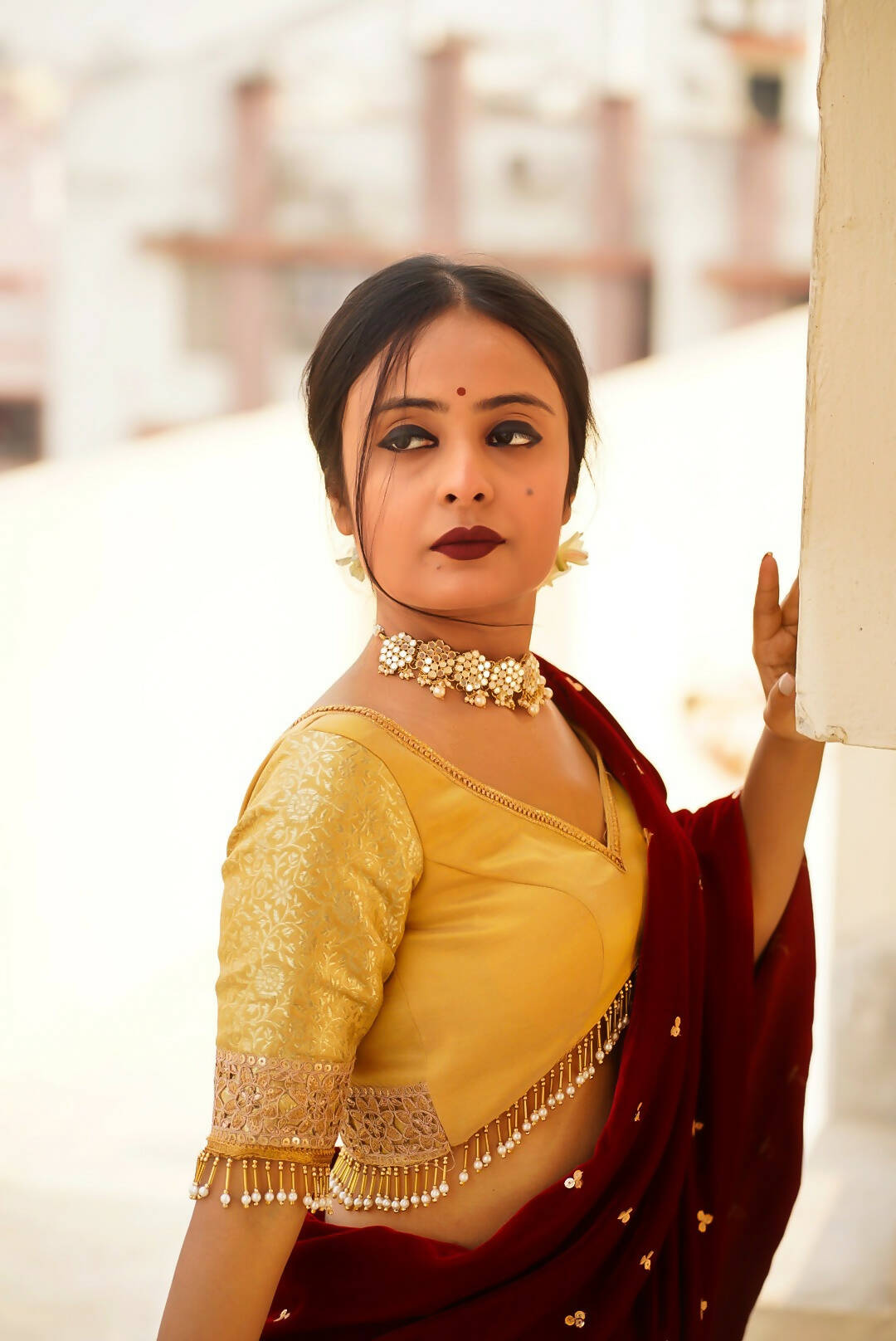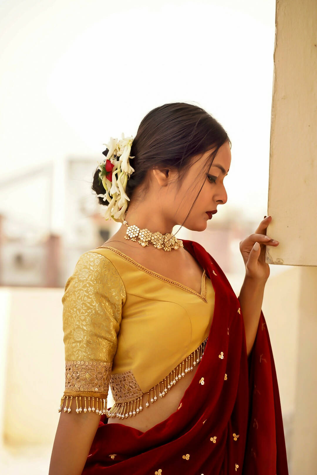 Elegantly designed to complement any saree, this blouse is a timeless fusion of tradition and style.