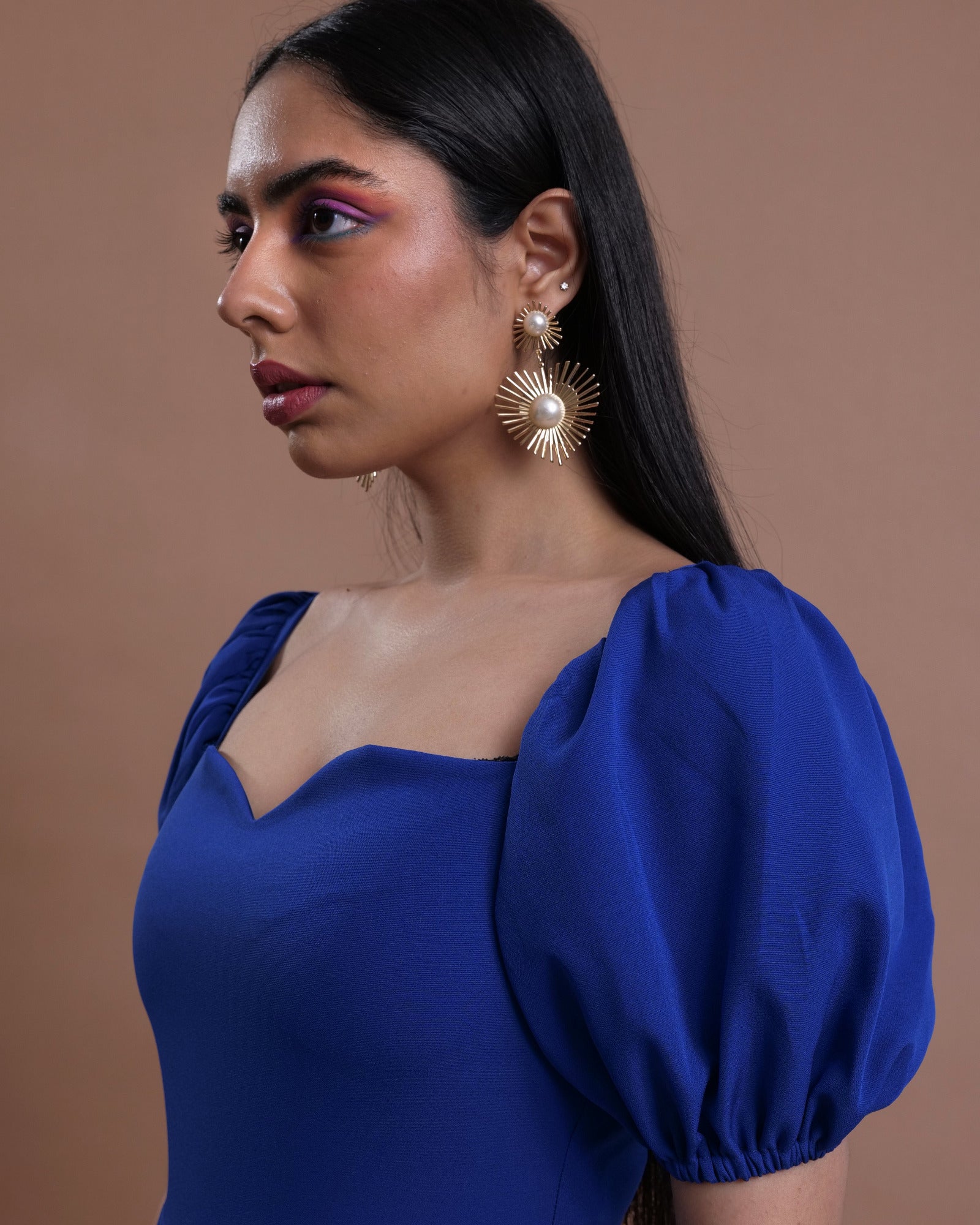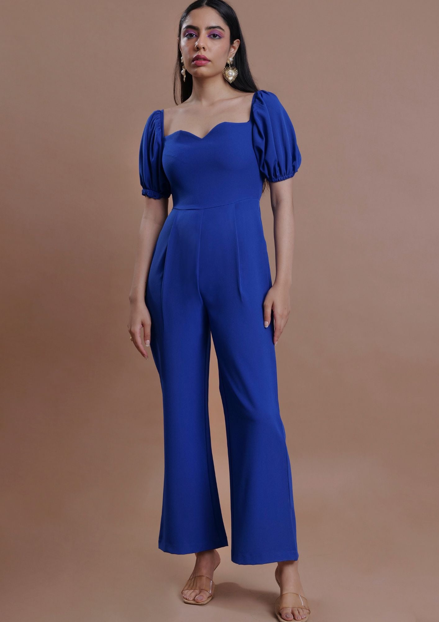 Make a statement in our jumpsuit with bold puff sleeves and a sultry deep sweetheart neckline! Designed with a back zipper for the perfect fit.