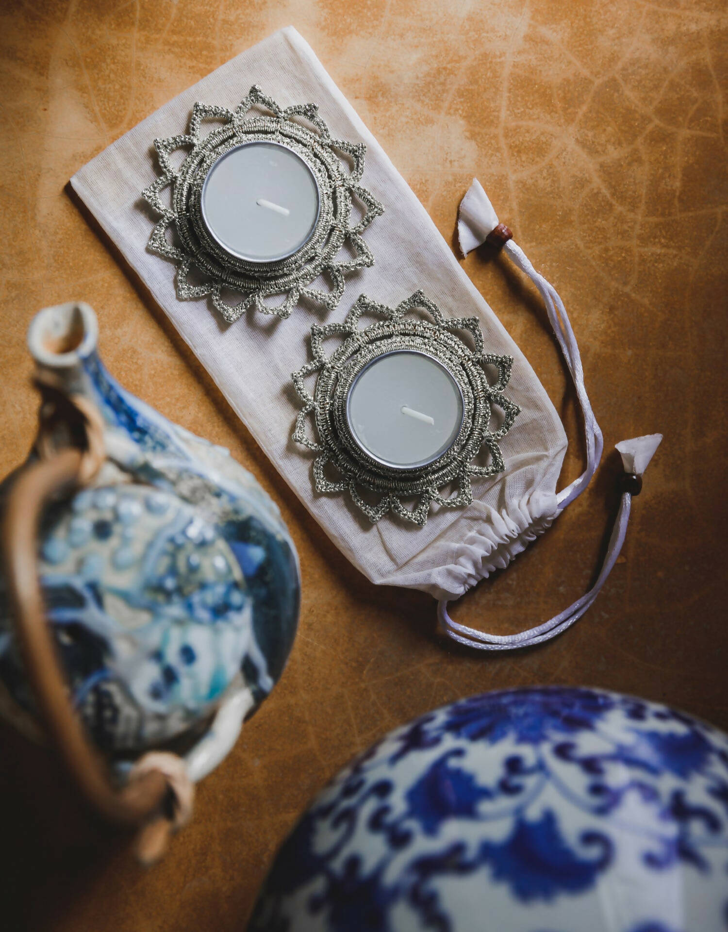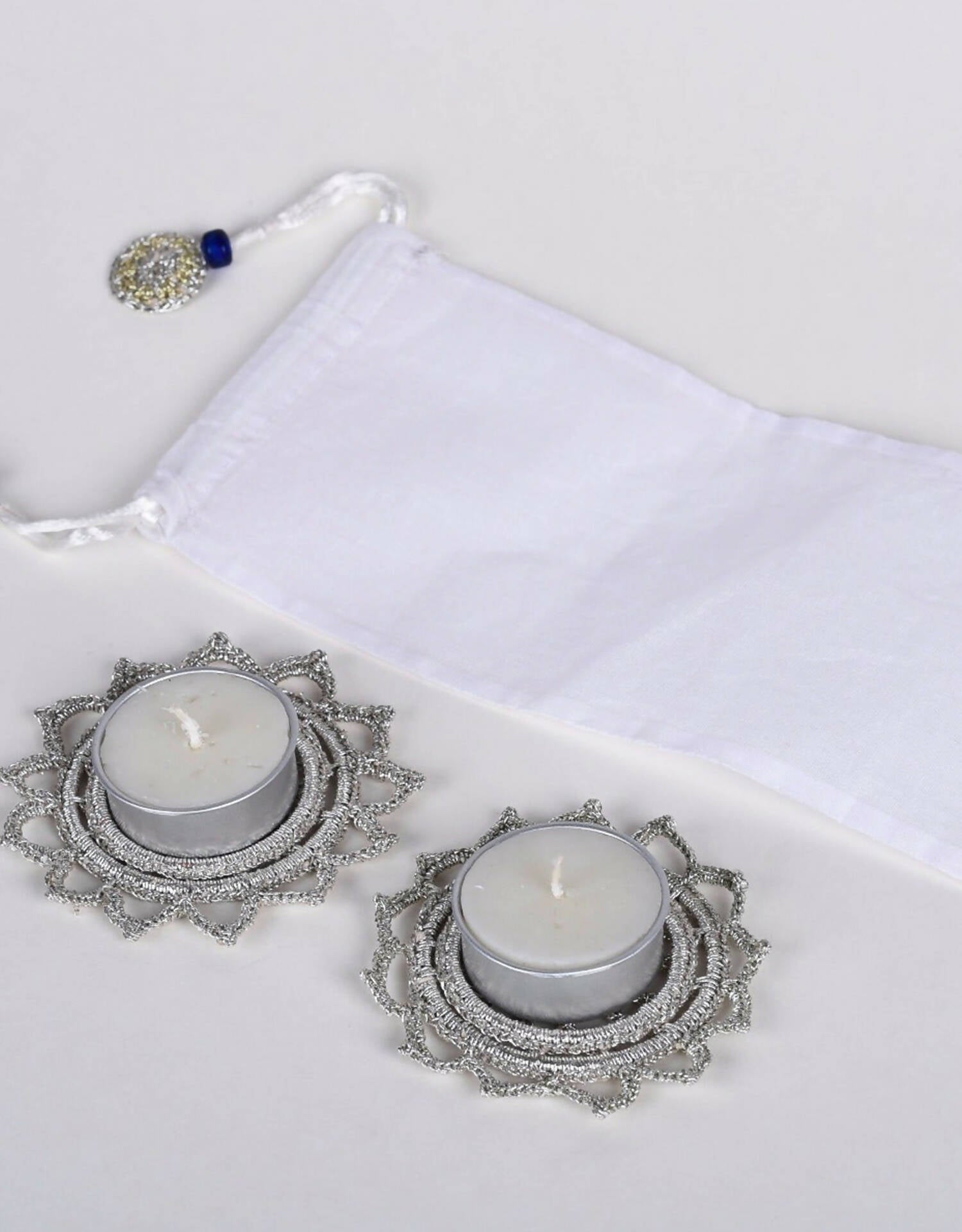 Place your tealights diyas on this handcrafted mats and give them a very classy and finished look. These are made in metallic zari threads and add that little line of perfection to your interiors.