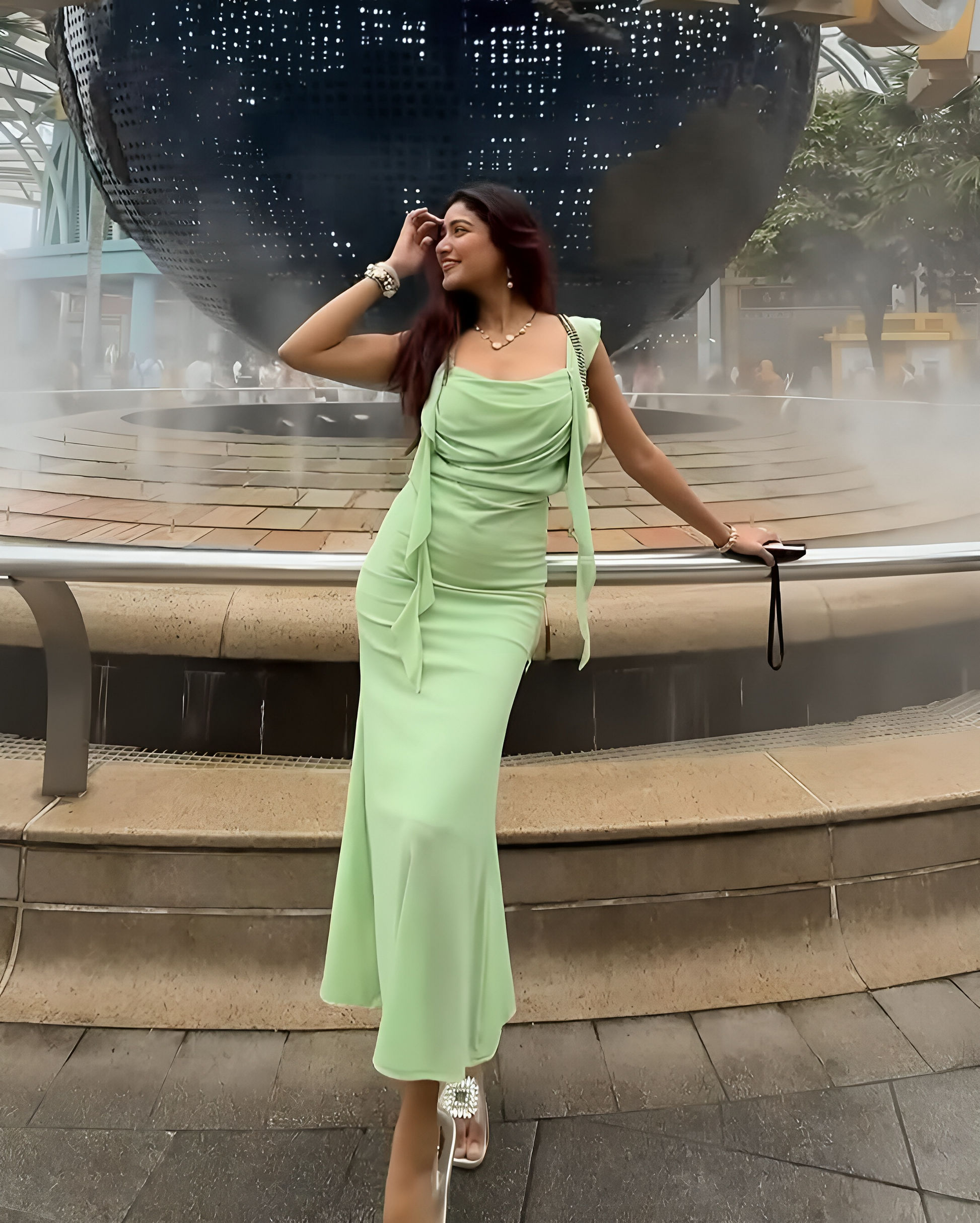 The Ruffle Dress in Red Lycra is a bold and playful addition to your wardrobe, designed to make a statement with every wear. Crafted from high-quality lycra fabric, this dress provides a form-fitting silhouette that comfortably hugs your body while offering the perfect amount of stretch for freedom of movement.
