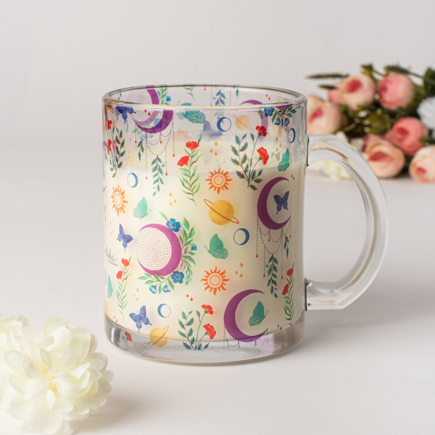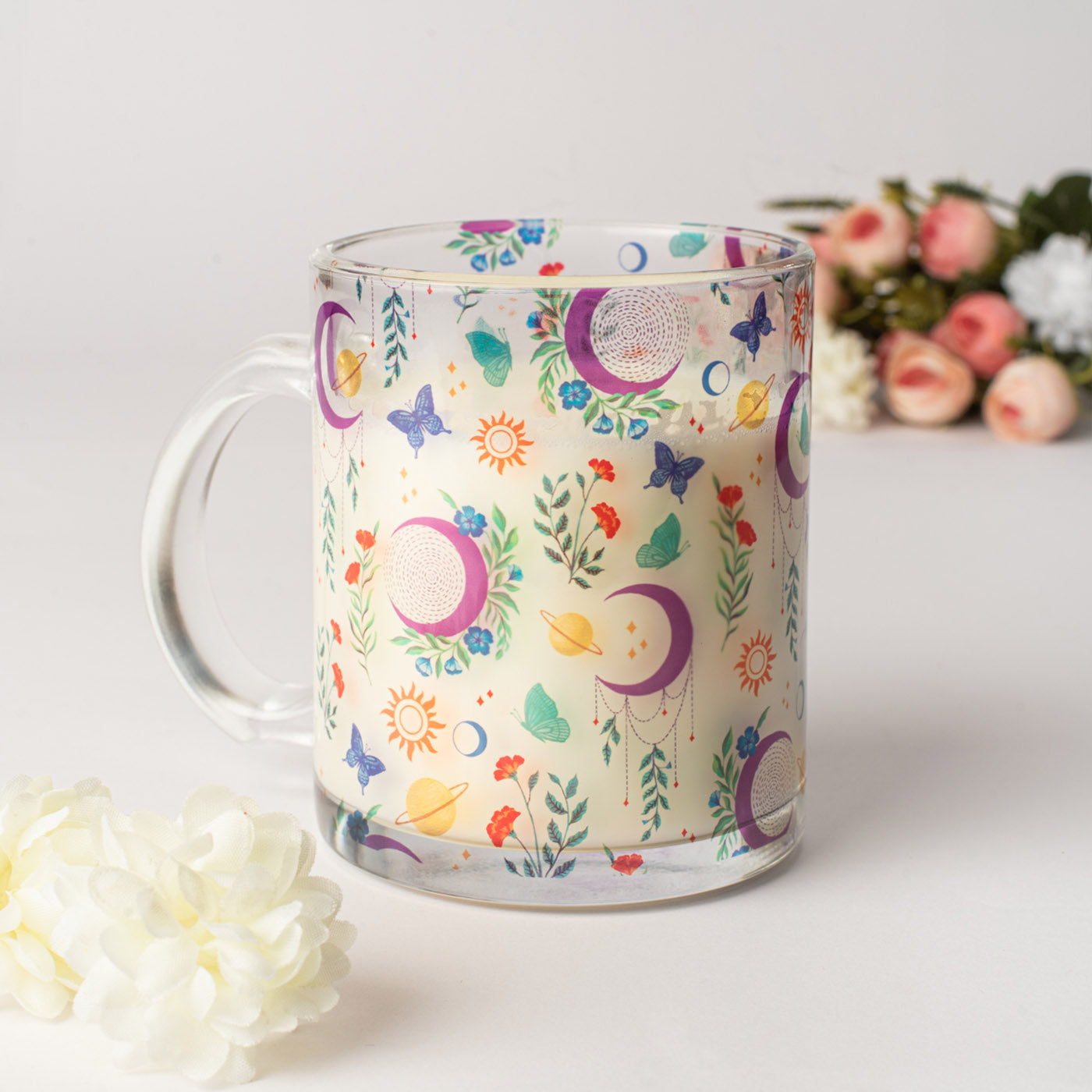 The Moon Child Frosted Glass Mug is a mystical design inspired by the celestial bodies. This design is fun, quirky and a must-have if you are a selenophile or astrophile!