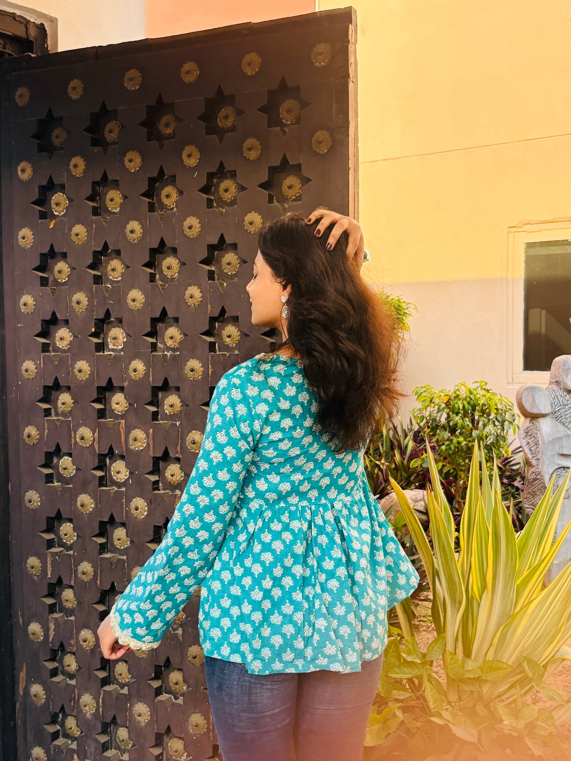 Noor is where timeless elegance meets everyday comfort. Crafted from lightweight cotton, this sleeveless kurti is adorned with intricate paisley prints that whisper tales of tradition with a modern twist. Pair it with your favorite denims or flared palazzos, stack up some oxidized bangles, and you're ready to turn heads whether it's a brunch date or a sunset stroll. Noor isn't just a kurti; it's a statement of effortless charm.