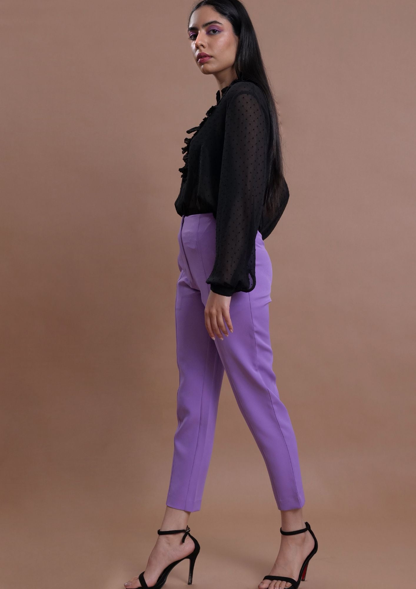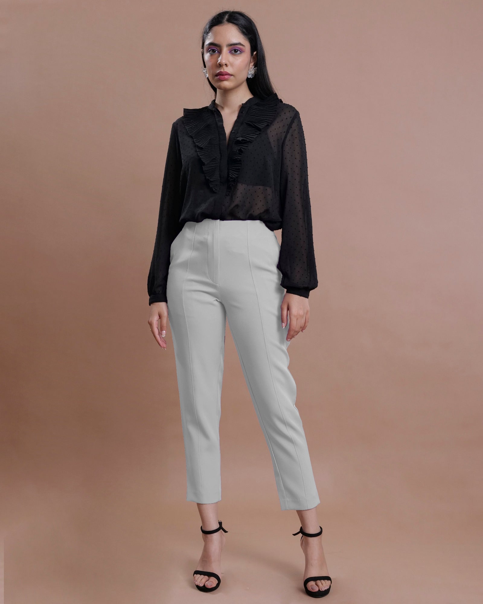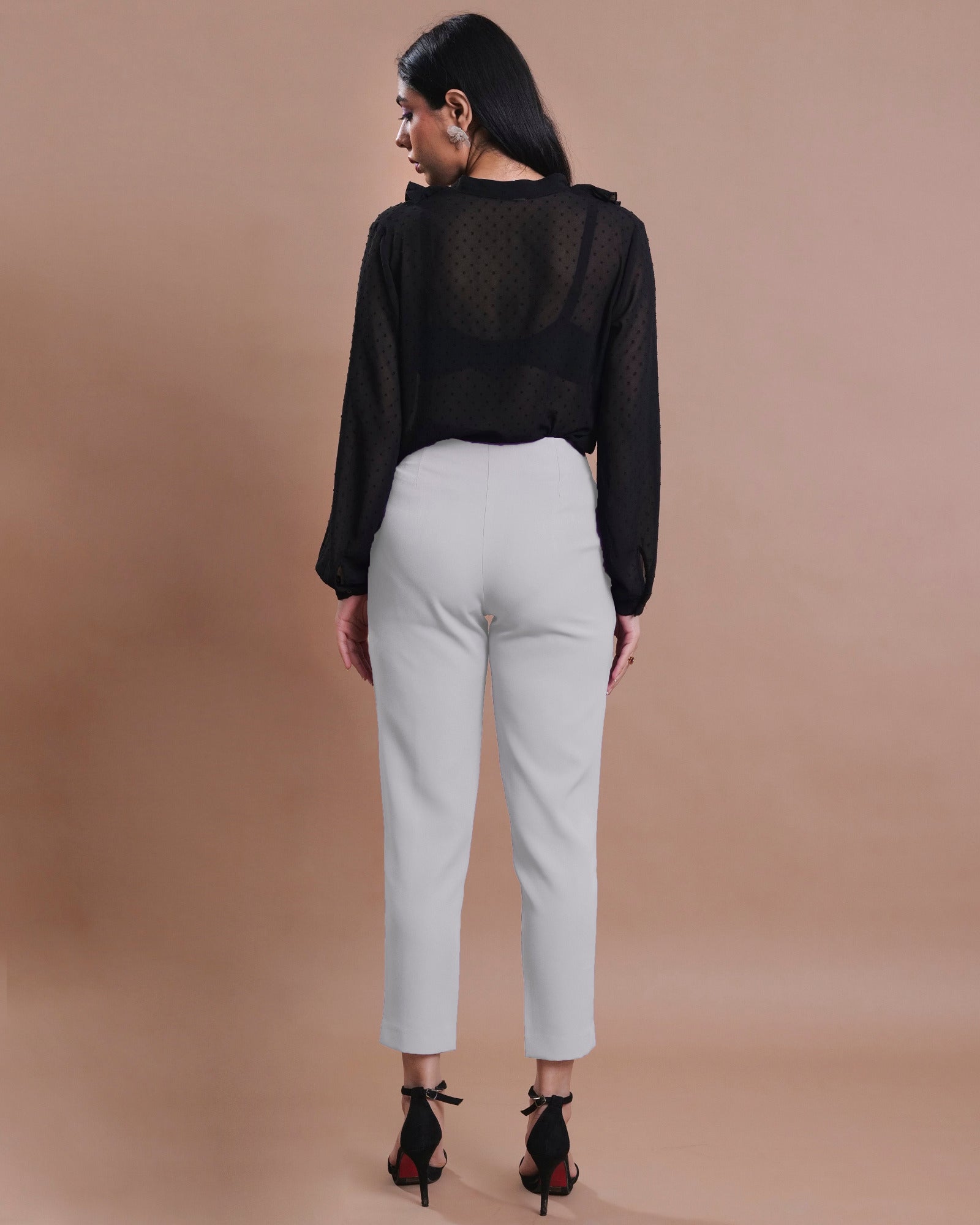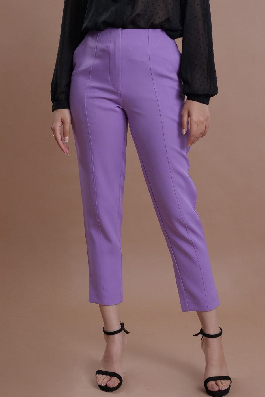 Get ready to rock these high-waisted trousers! They have a sleek narrow hem and cool seam details on the front. Plus, they're super practical with handy inseam pockets and an easy front fly zipper.