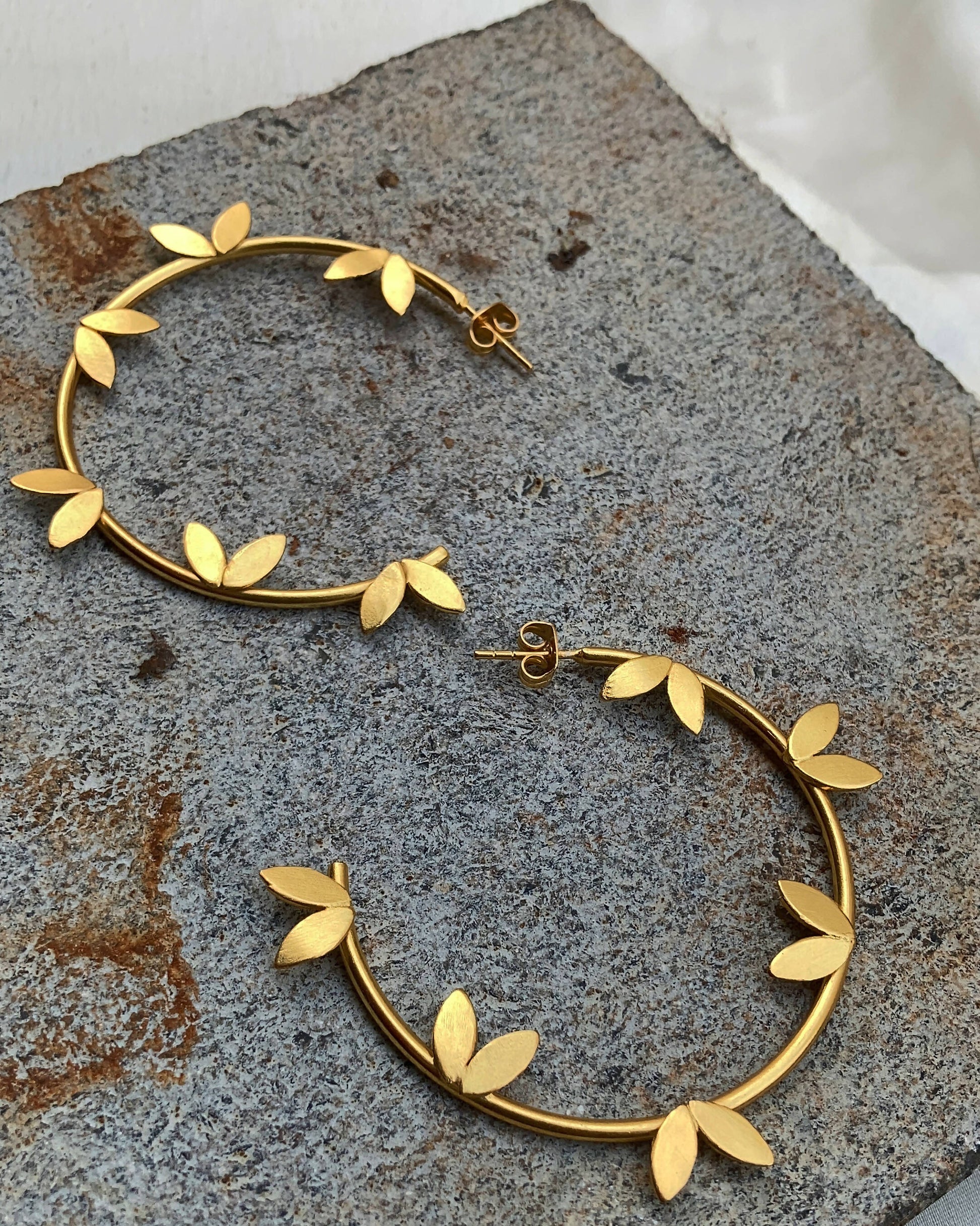 Our leaf patterened THEA HOOPS would be a great addition to your daily outfit!