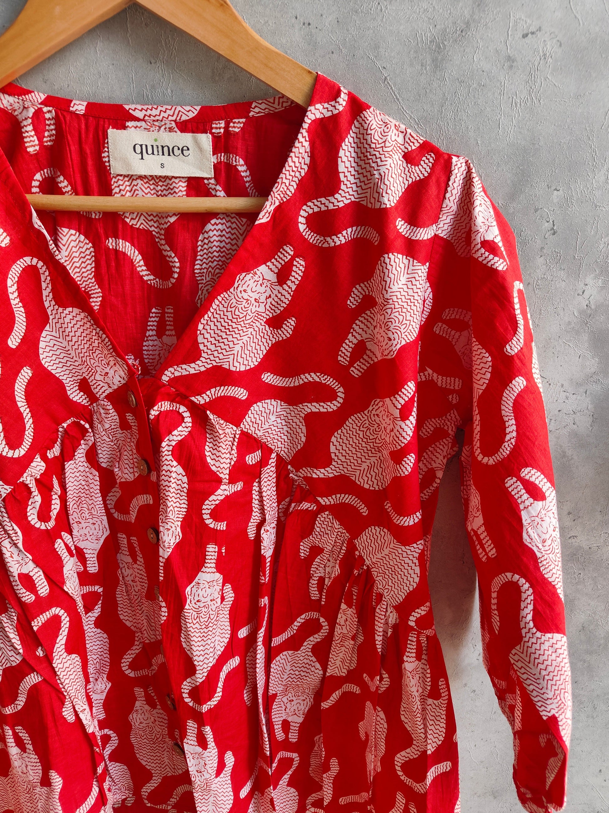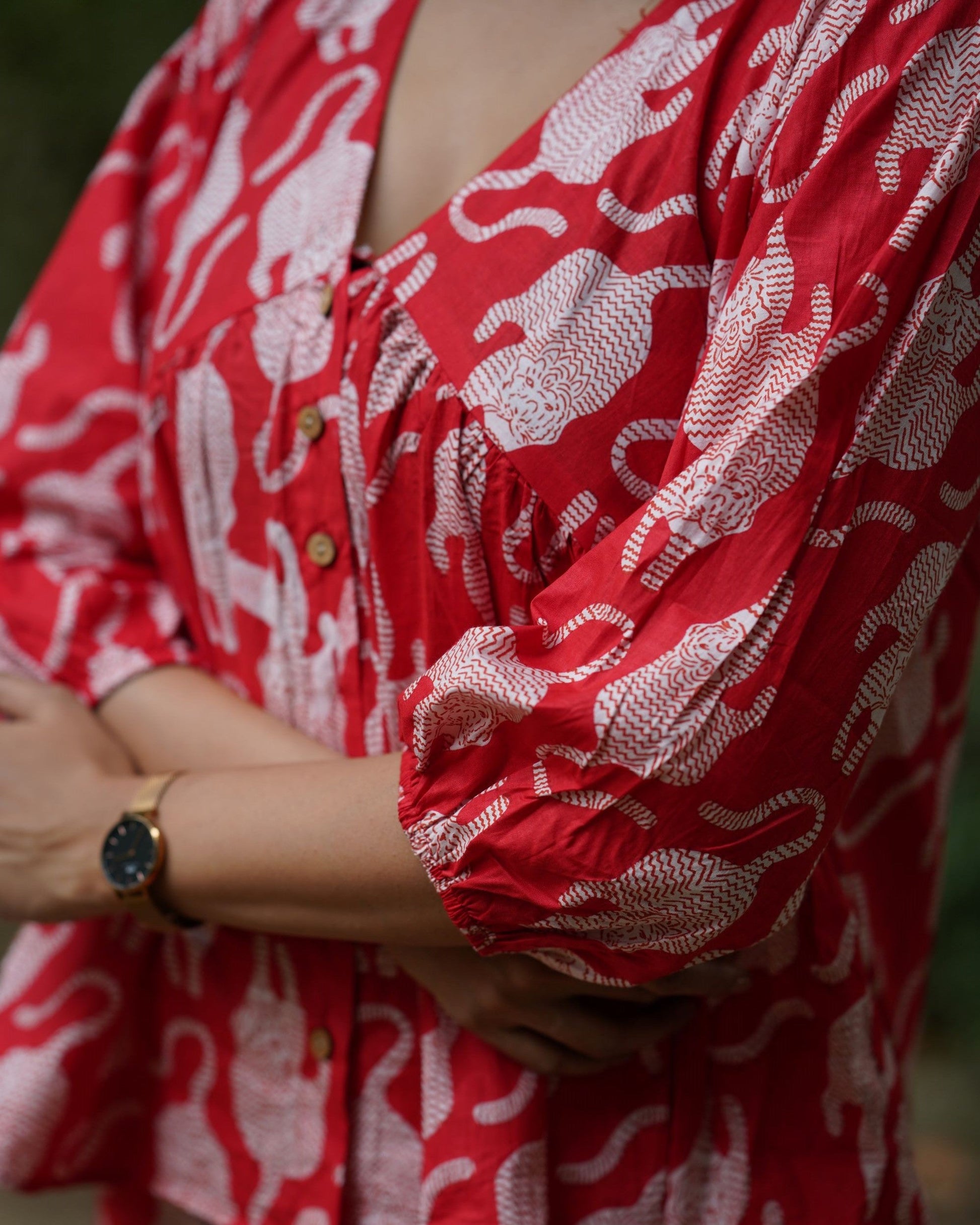 Our bestseller print now comes in a Top. The bright red fit and flare style top just accentuates about any body type. This happy shade of red evokes a sense of chirpiness. Made in 100% cotton, style this gorgeous top with flowy skirt or beautiful white pants for that perfect brunch look.