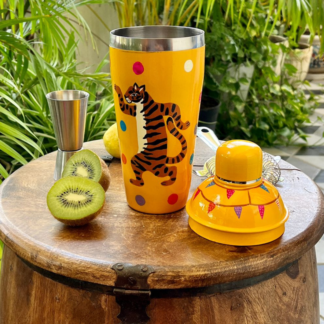 Introducing our exquisite Handpainted Cocktail Shaker, a true masterpiece that brings artistry and mixology together. This stunning shaker features a vibrant and dynamic dancing tiger, meticulously hand-painted by skilled artisans. Crafted from high-quality stainless steel, it not only adds a touch of the wild to your bar but also ensures durability for years of shaken creations.
