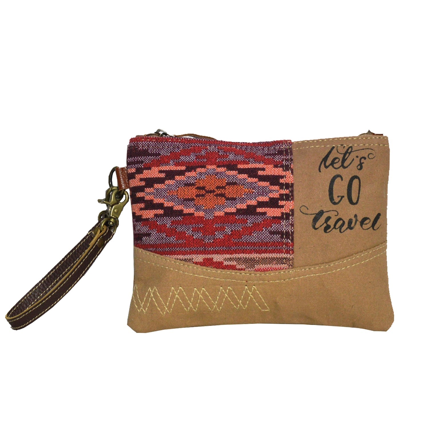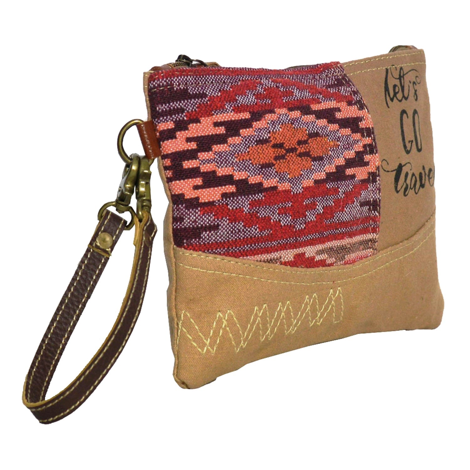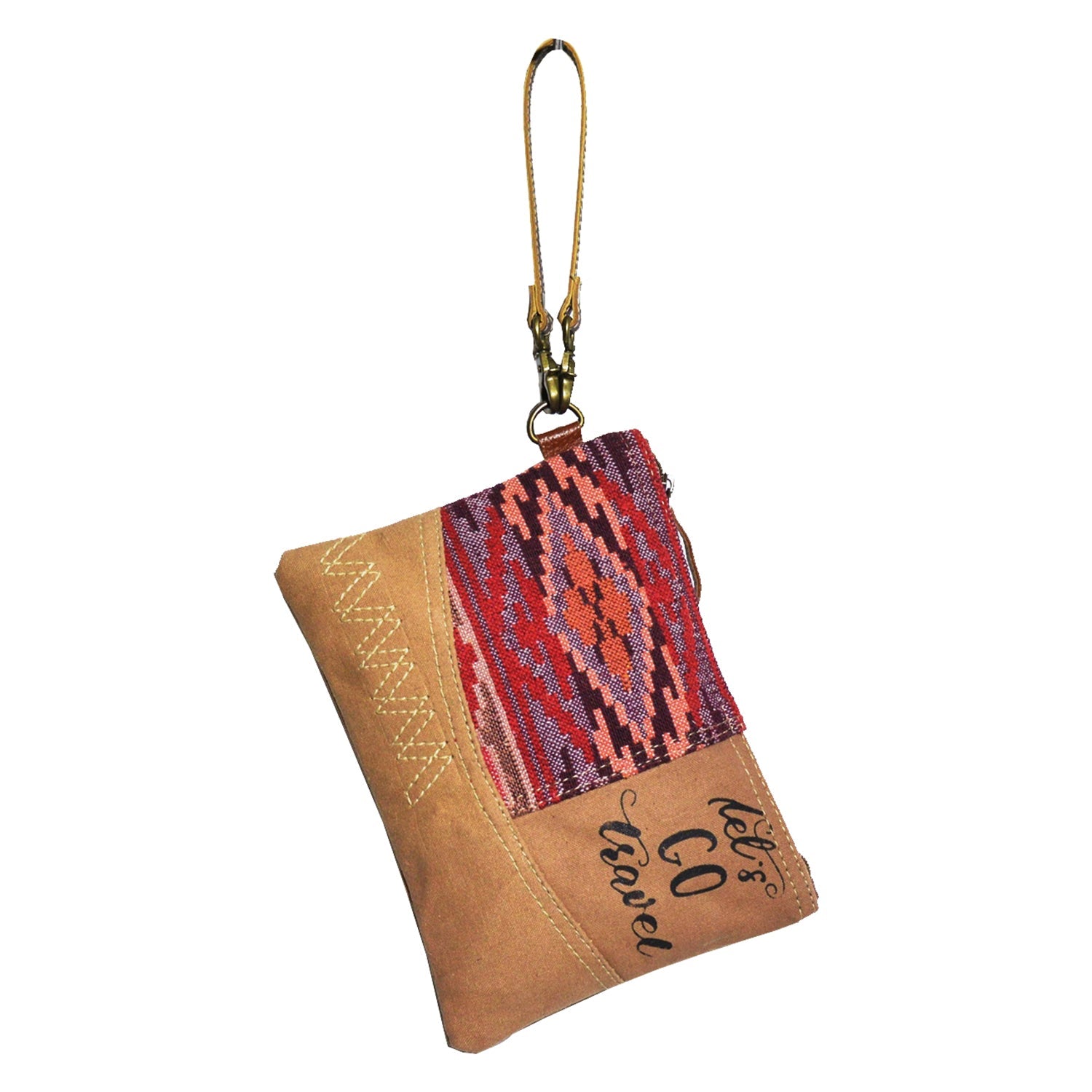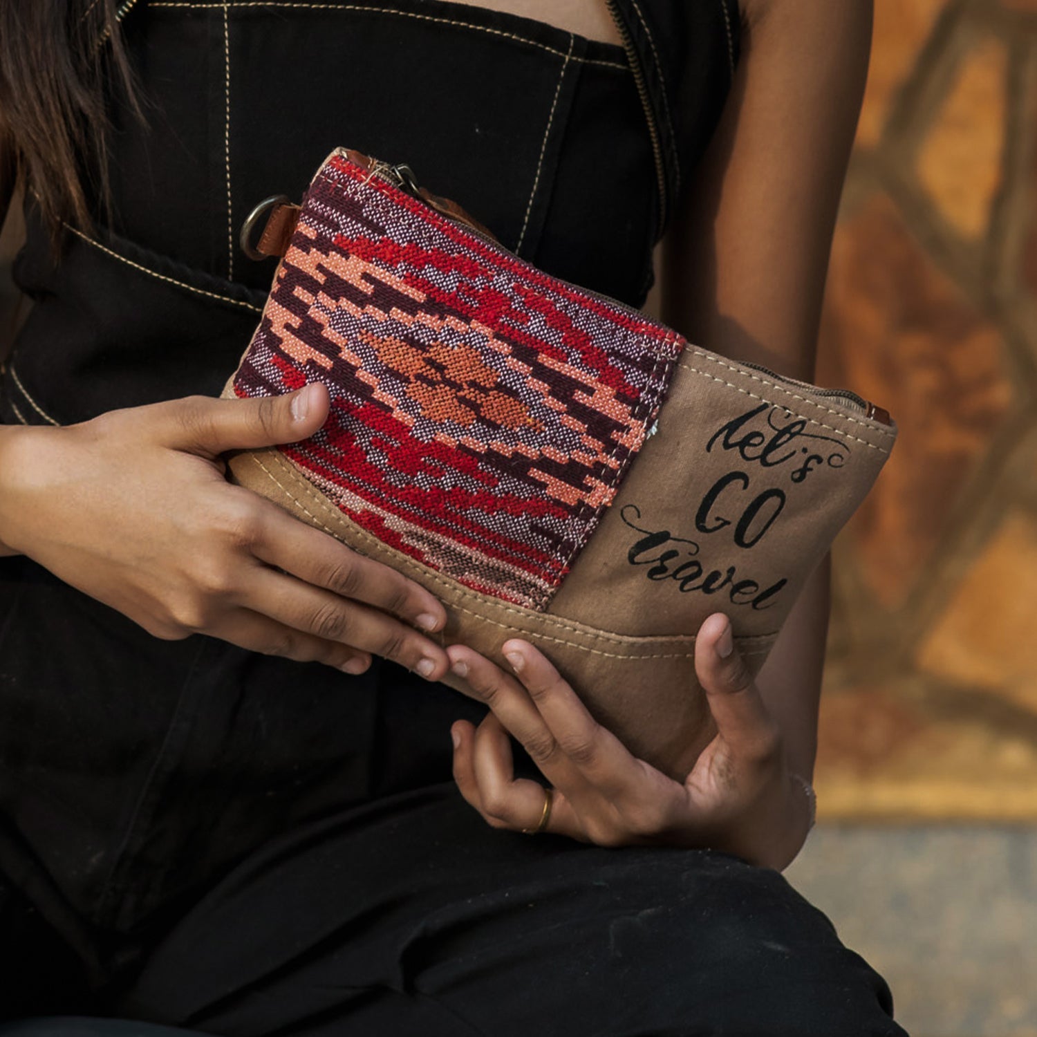 Materials: Upcycled canvas with cotton rug & leather