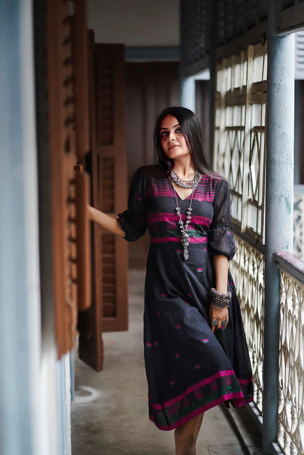 Adorn yourself in our Handwoven Soft Cotton Dress. Crafted with love and Lotus inspired motifs.