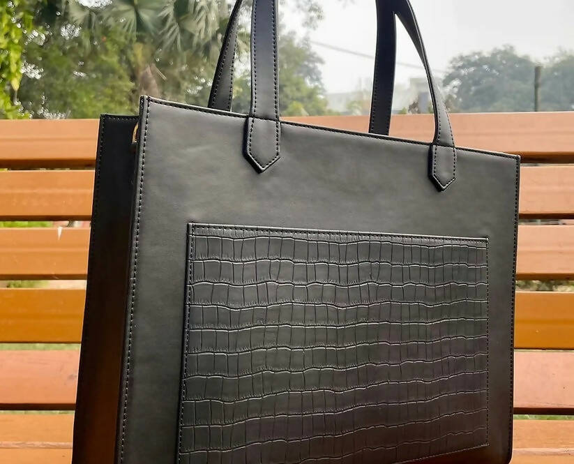 Handcrafted in best quality black faux leather, this bag is a perfect office bag. Medium can fit upto 14-inch laptop and Large can fit upto 16 inch laptop and has a good amount of space inside to carry all your office essentials.