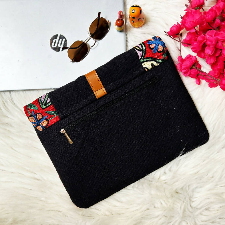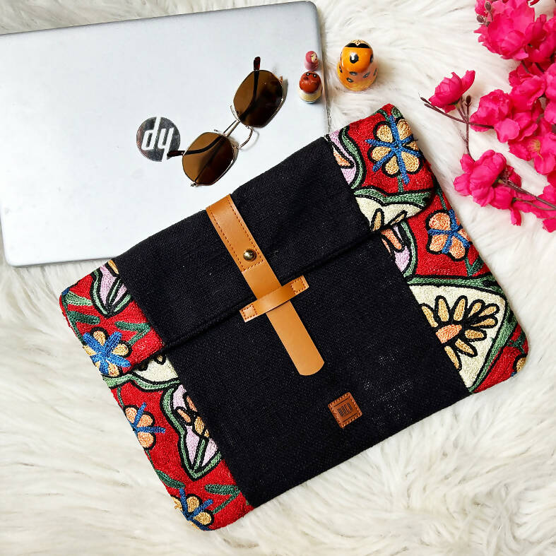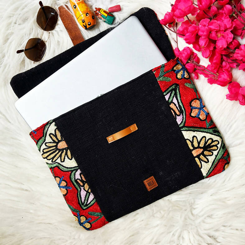 This hand embroidered tulip laptop sleeve, carefully crafted sleek exterior to compliment your work attire. It has one main padded compartment that can fit up to 14 inches laptop. It also has a back easy zipper pocket to keep your essentials. It has a flap closure .