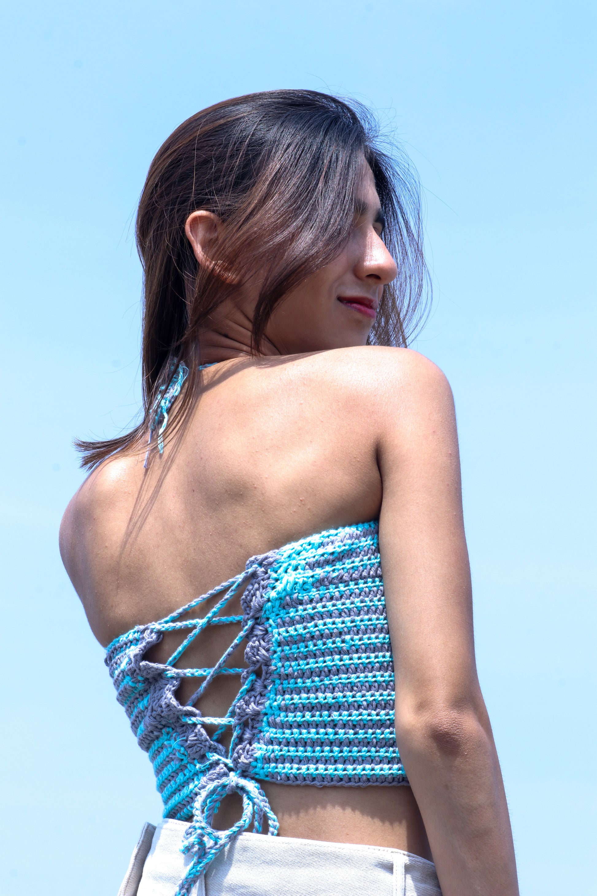 Crafted with the summer heat in mind, the breathable cotton yarn keeps you cool and comfortable even on the hottest days. For added style and practicality, the back boasts a criss-cross design, offering a tailored fit that accentuates your curves beautifully.