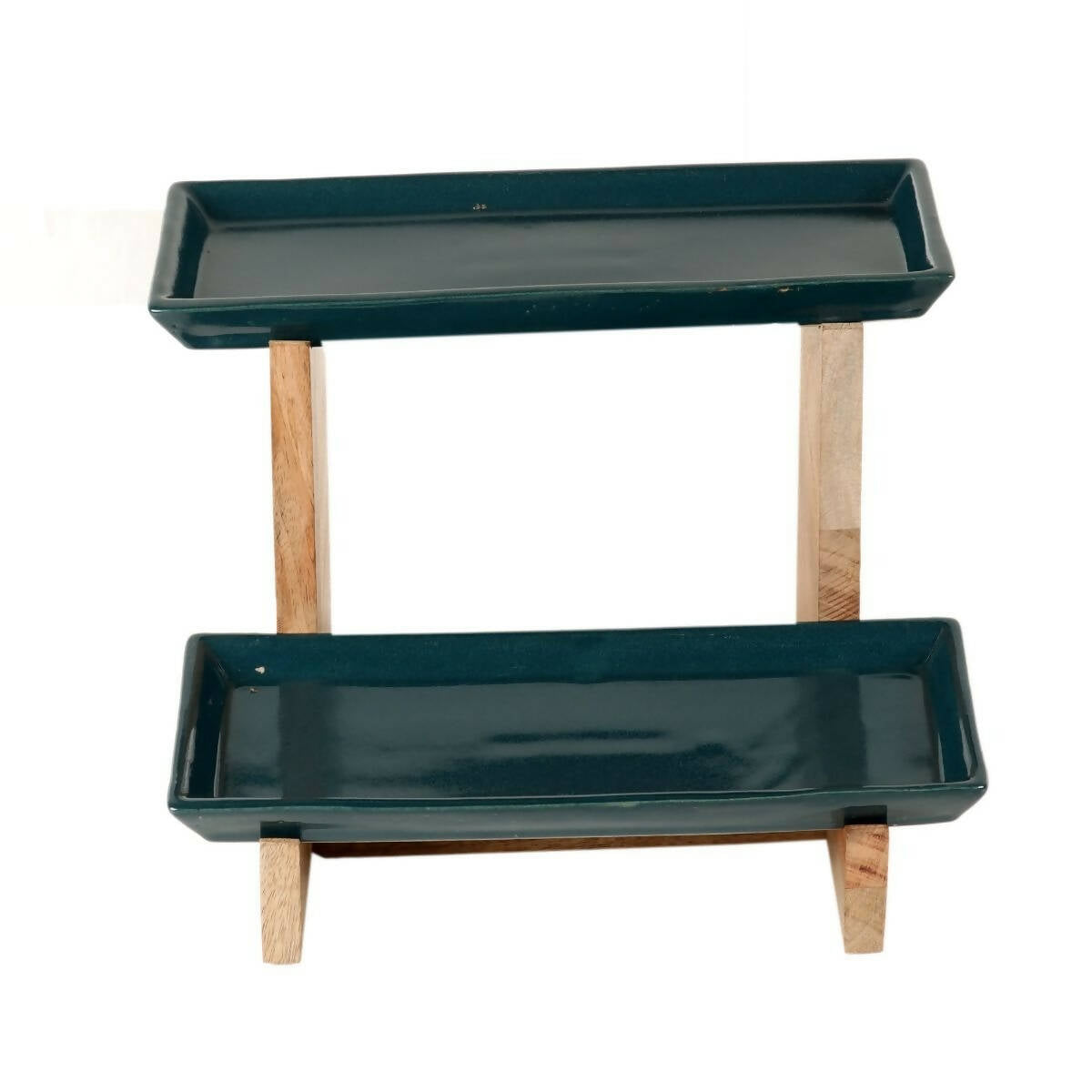 A Two Layer Wooden & Ceramic Snacks Platter is perfect Platter to serve your guest and loved ones, it can be used for gifting also!