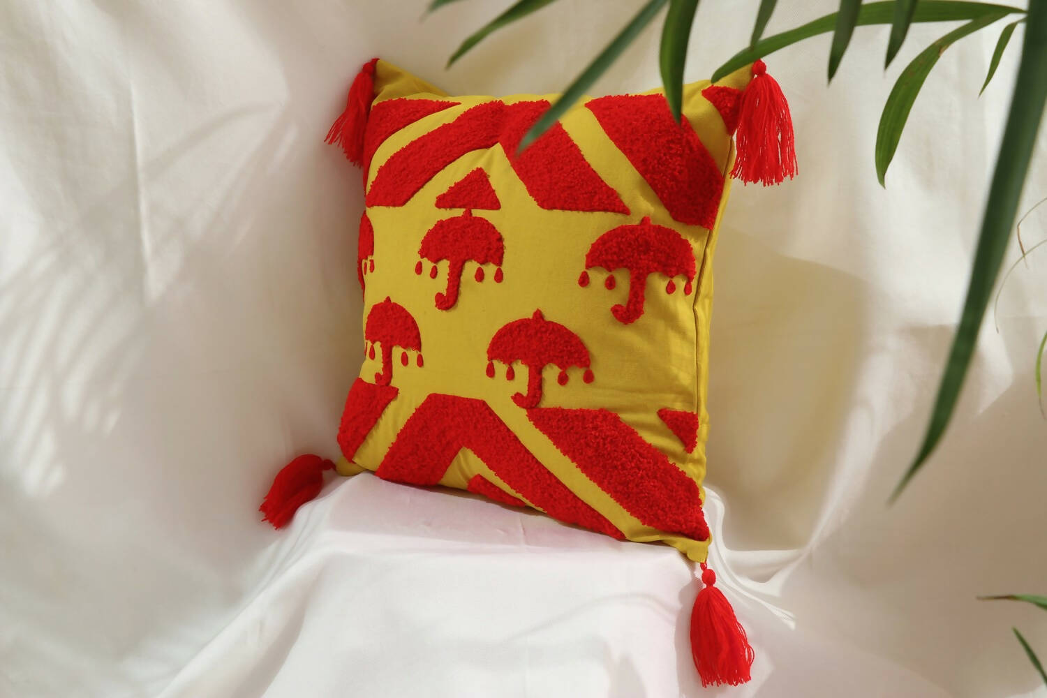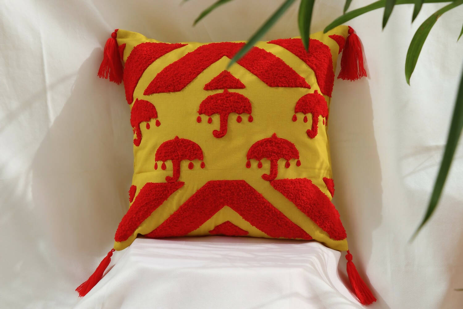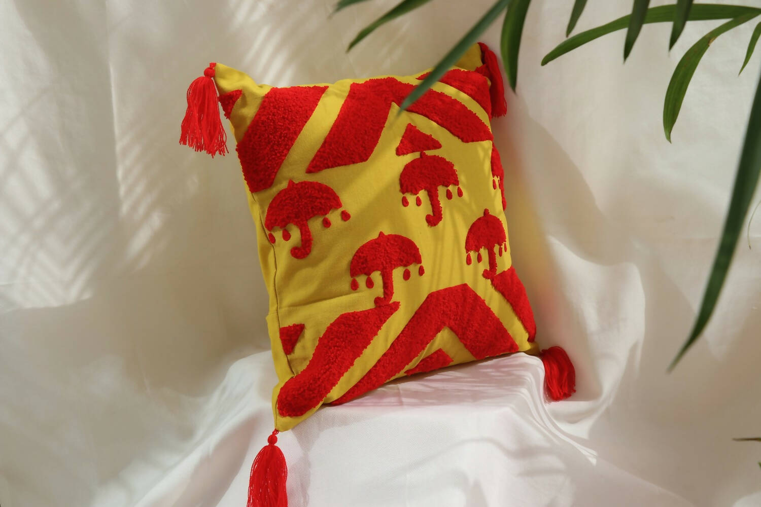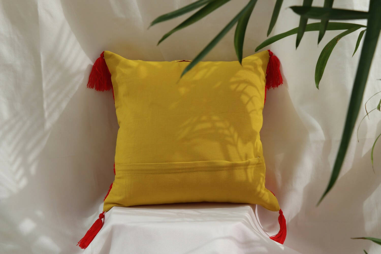 The cushion cover is made with duck cotton fabric, embroidered by local artisans of UP, India.