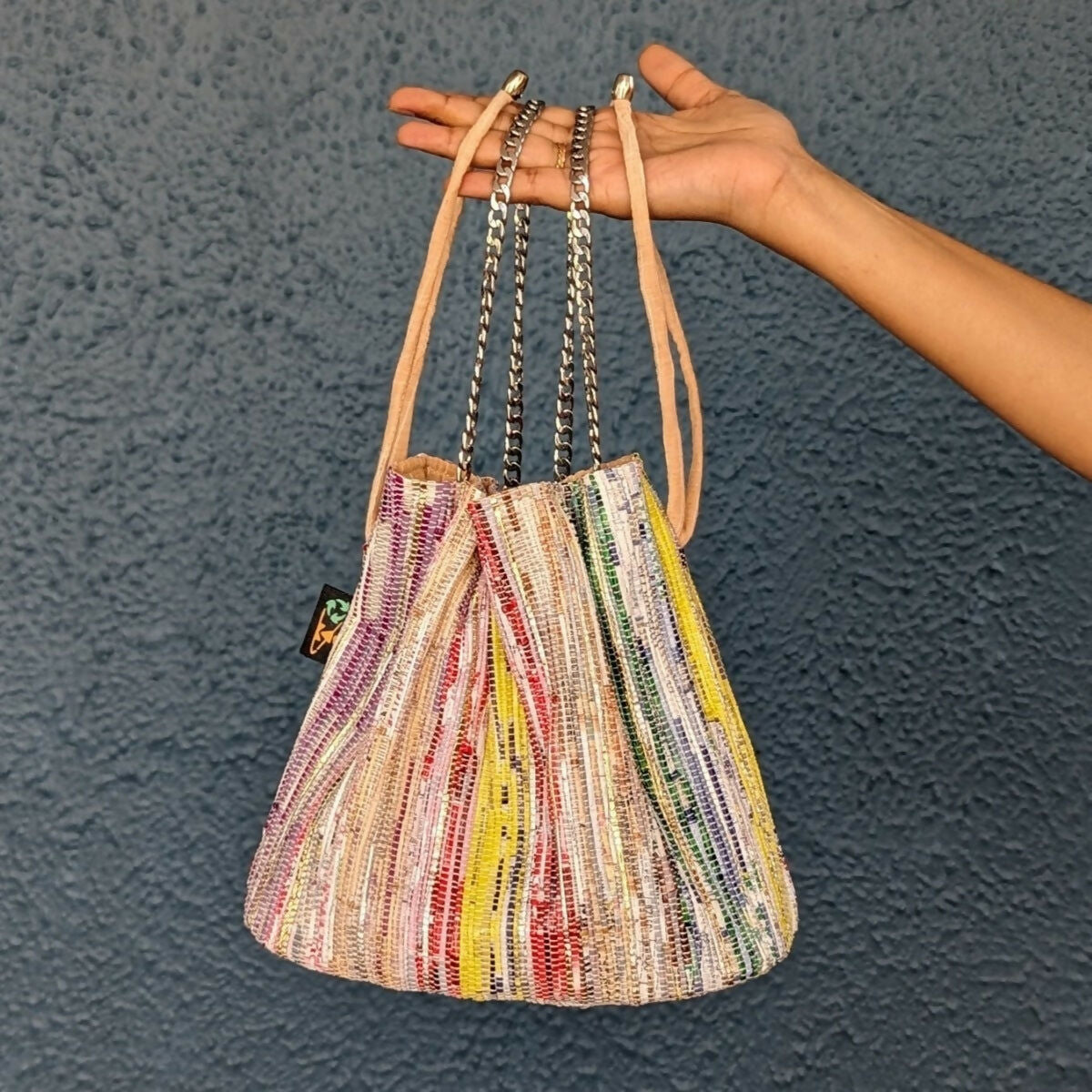 Note: The colors may vary as these products are Upcycled and Handwoven from Waste plastics bags and wrappers using Charkha (Spindle) and Handloom. However, the structure, fit and finish of the product is as shown in the image. Our team will contact you to check for your choice of colour as per availability.