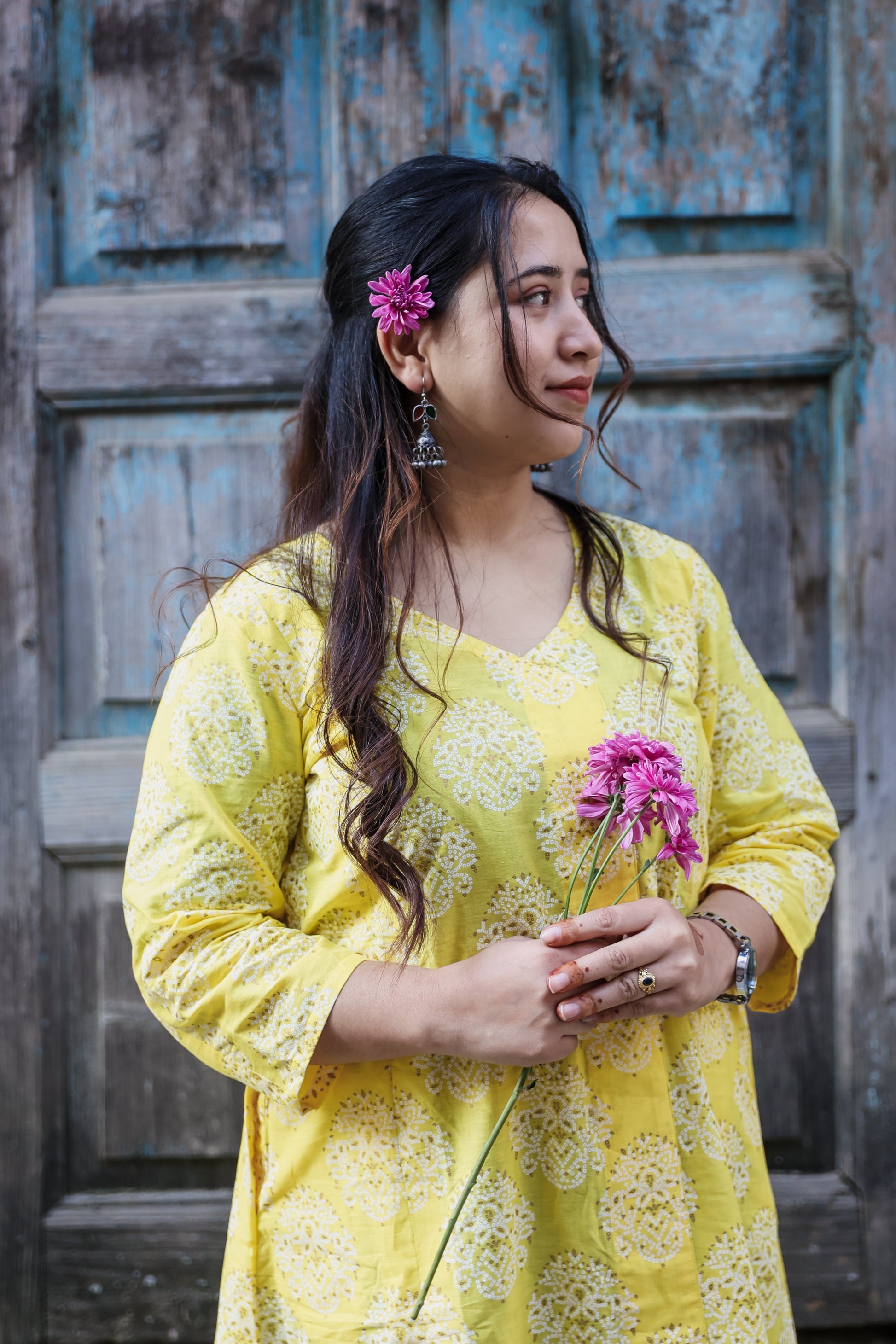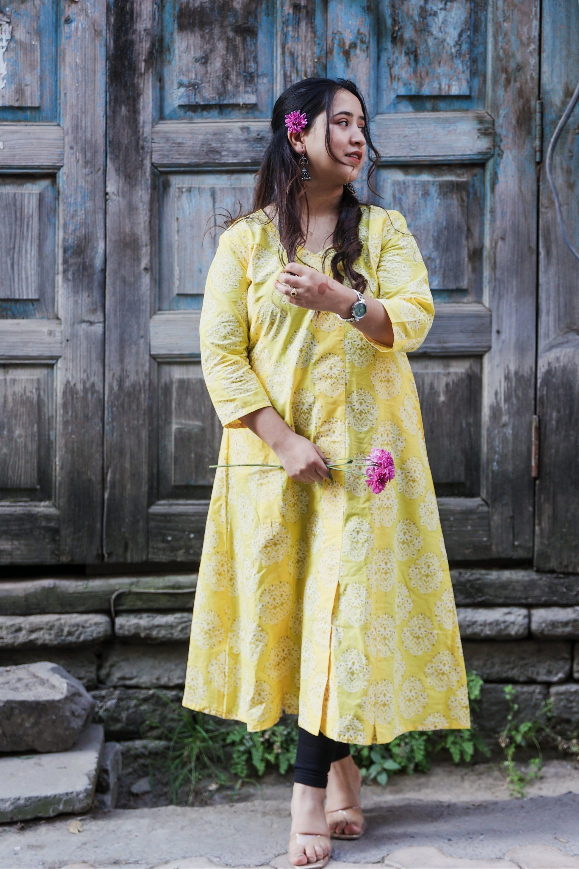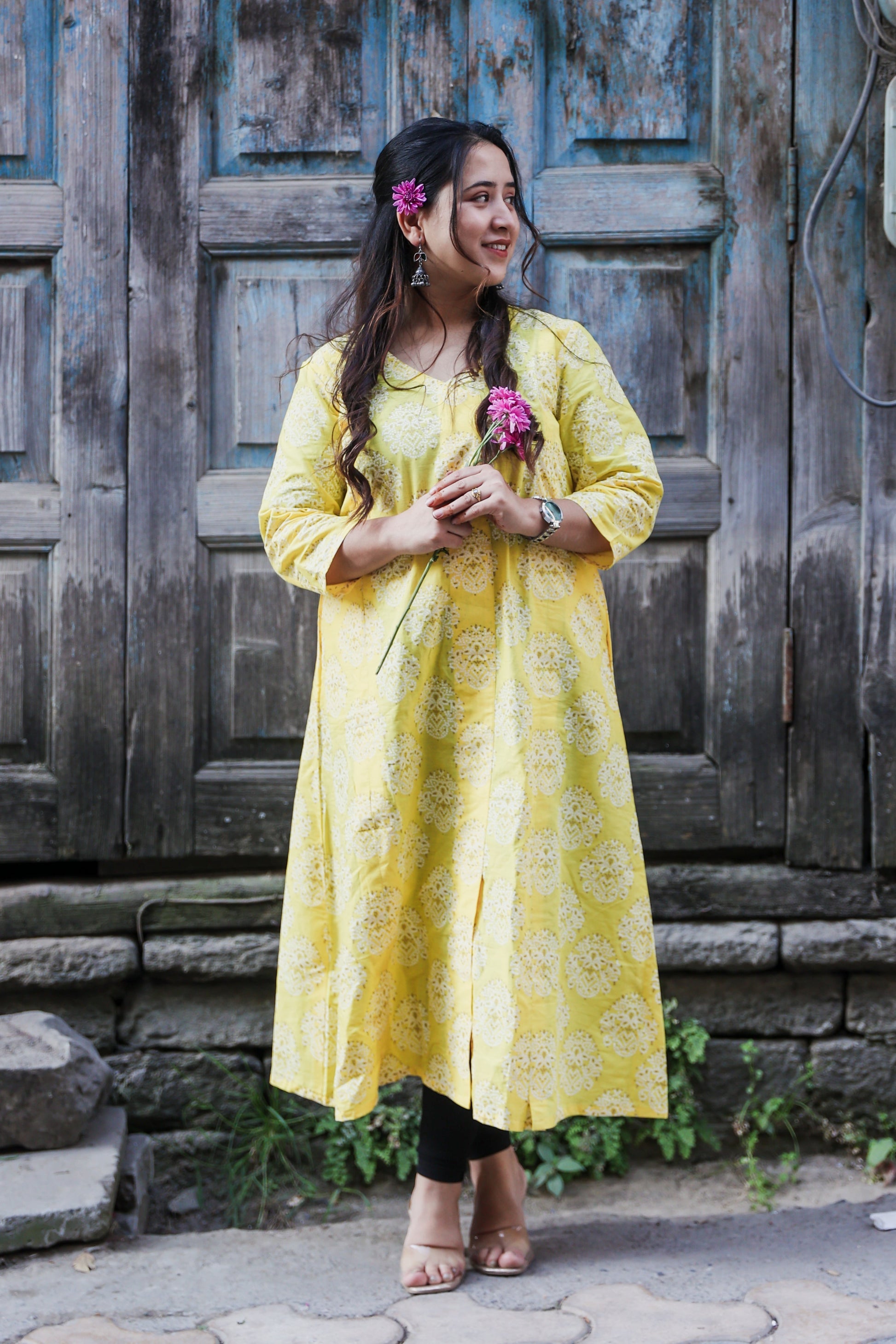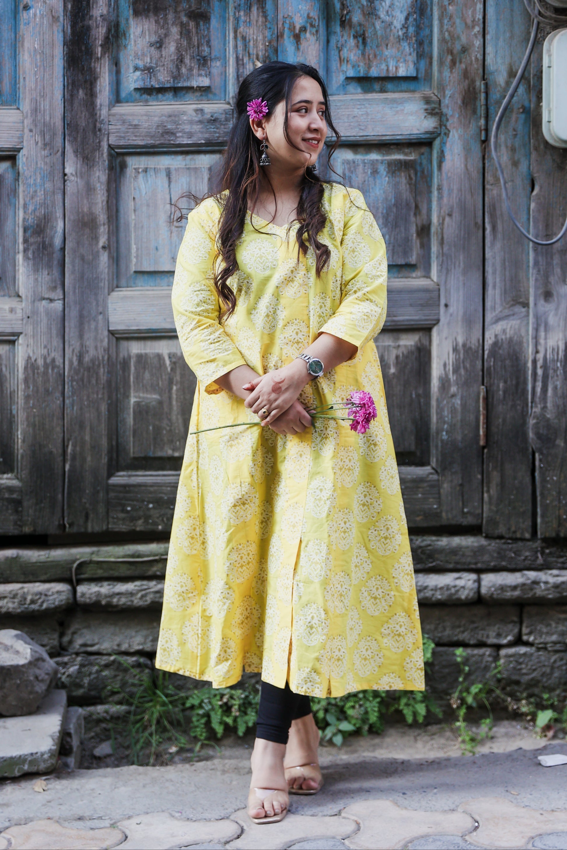 Exude elegance with the Vedika Bandhani A-line Long Kali Kurta. Crafted from soft cotton fabric, this kurta showcases stunning Bandhani prints that add a vibrant touch to your wardrobe. Featuring a flattering V-neck, 3/4th sleeves, and practical pockets, it effortlessly combines style and comfort for a chic, traditional look.