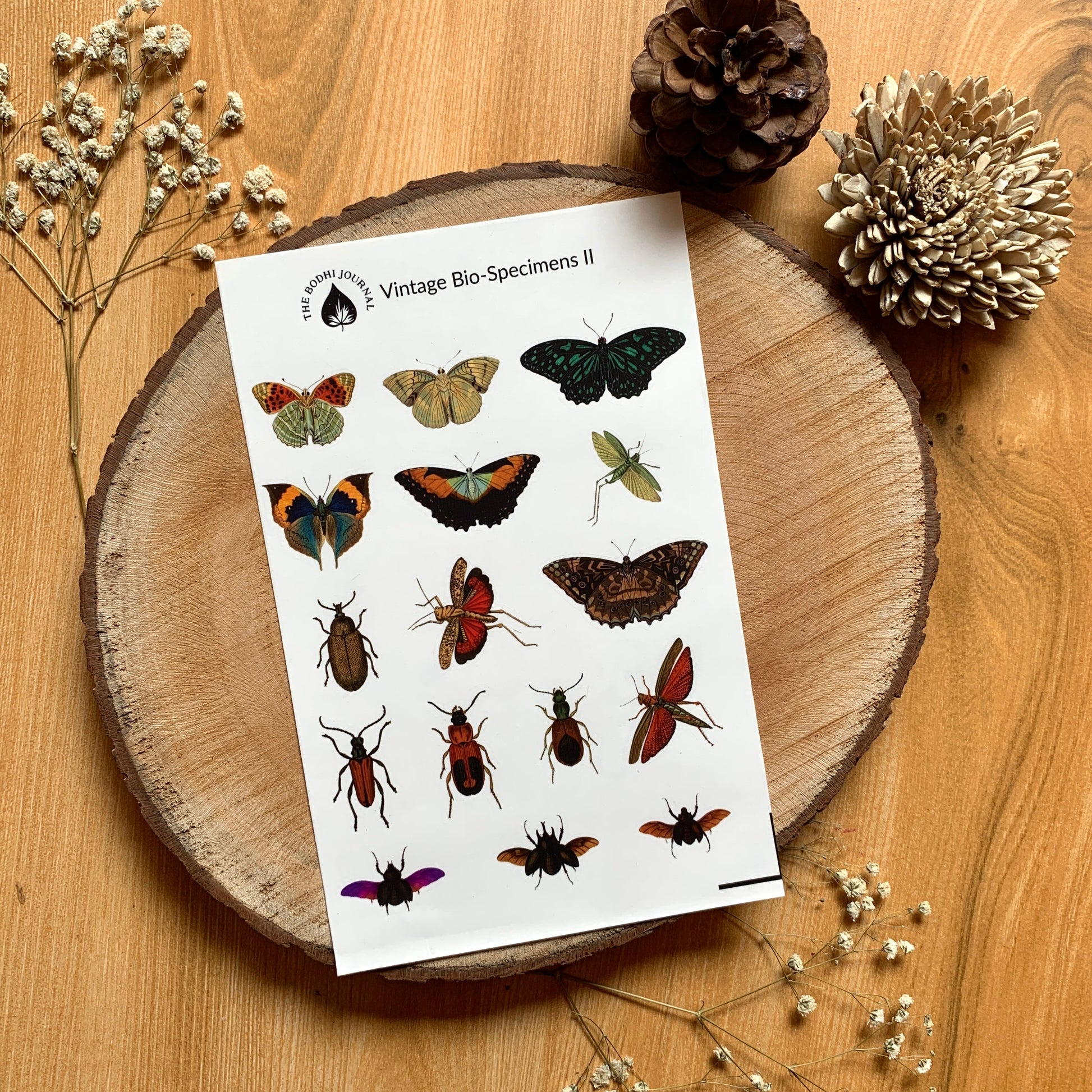 Vintage scrapbooking and journaling is incomplete without butterflies and insects. These little nature elements can add so much beauty to the spread in an instant. The sticker designs are in varying sizes so they can be used as key elements or even to fit in those tiny spaces. These specimens set a beautiful woodland vibe.How to use: Peel off the design of your choice and simply paste it.