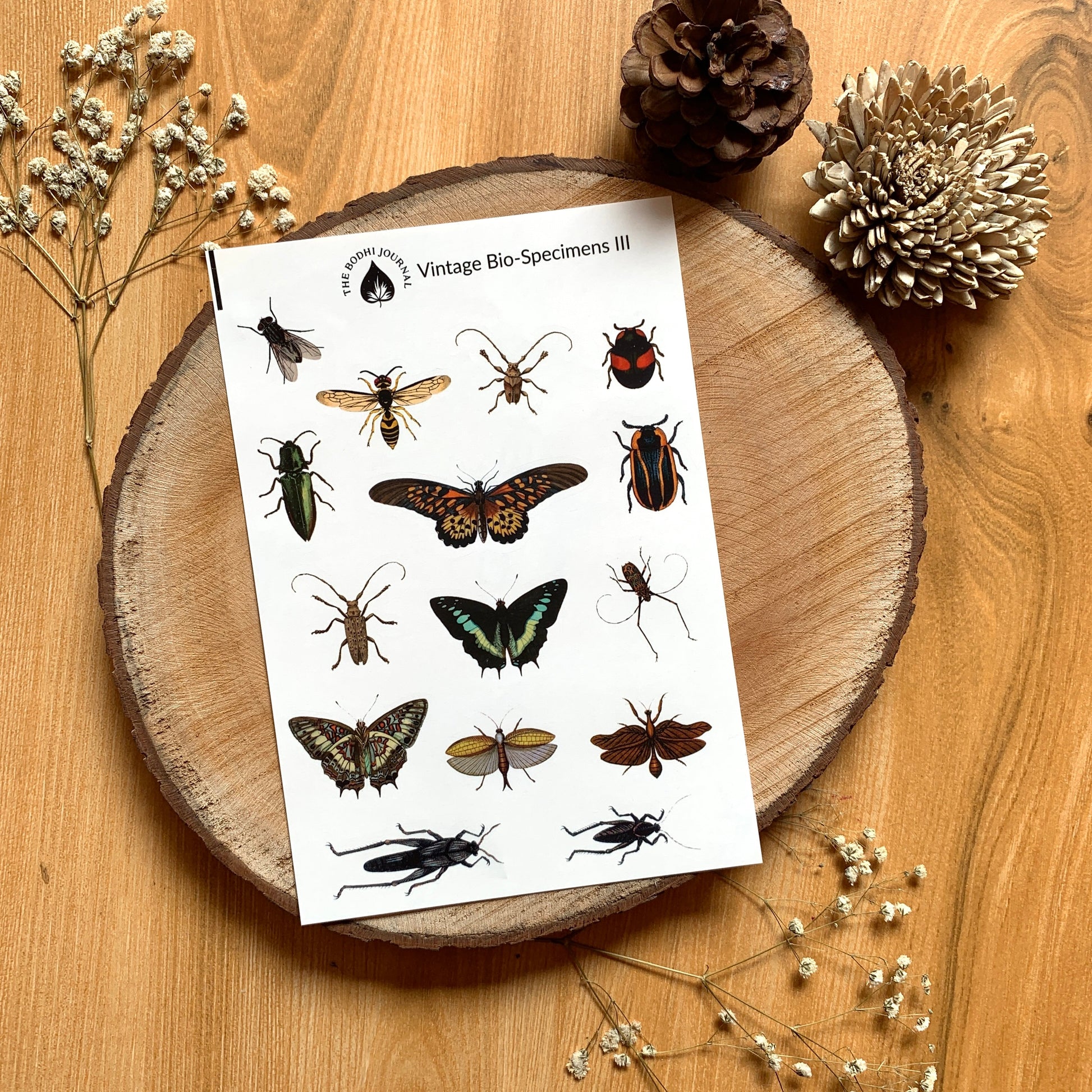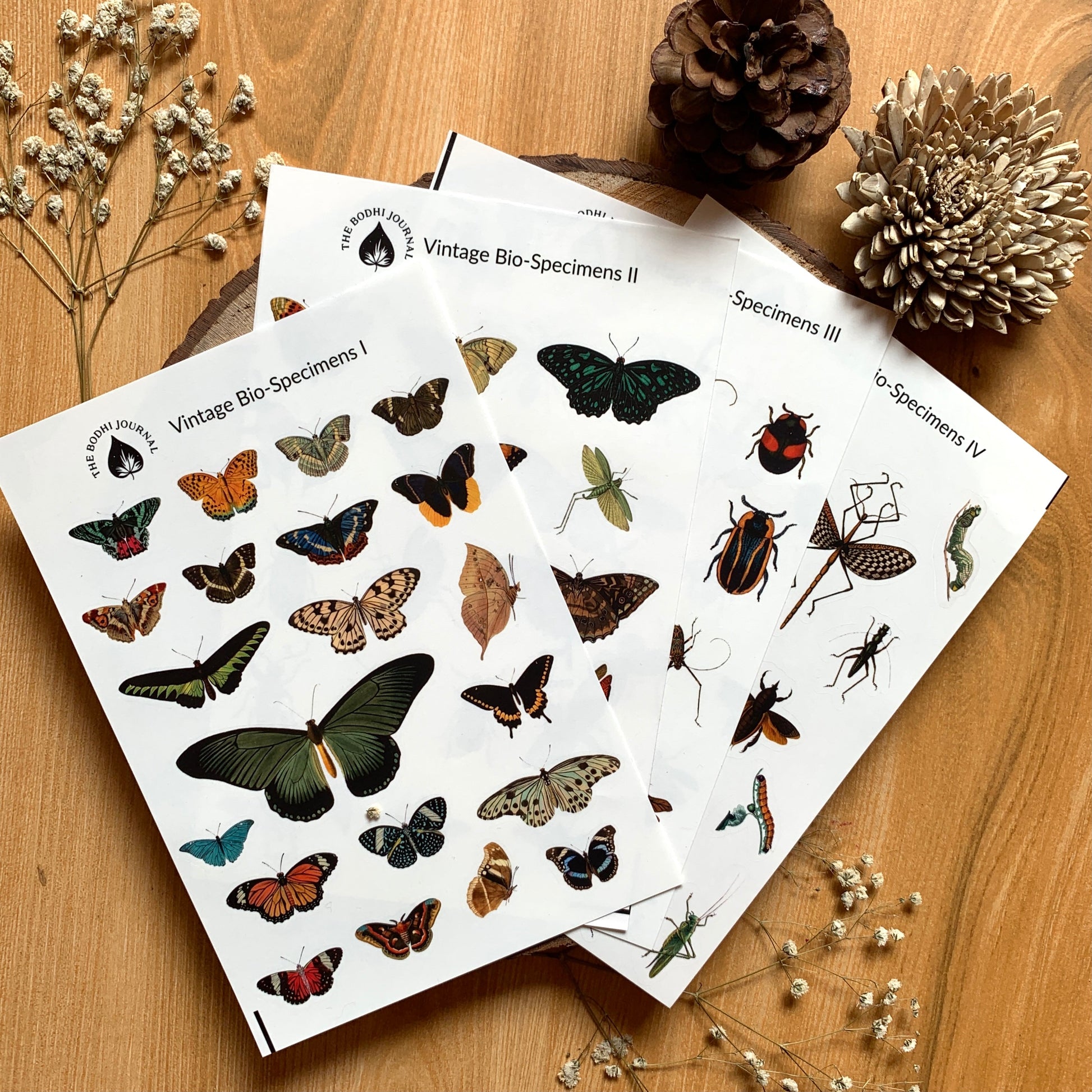 Vintage scrapbooking and journaling is incomplete without butterflies and insects. These little nature elements can add so much beauty to the spread in an instant. The sticker designs are in varying sizes so they can be used as key elements or even to fit in those tiny spaces. These specimens set a beautiful woodland vibe.How to use: Peel off the design of your choice and simply paste it.