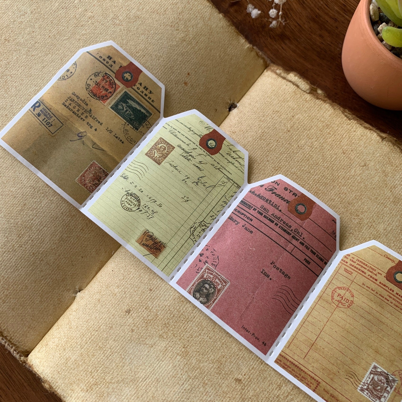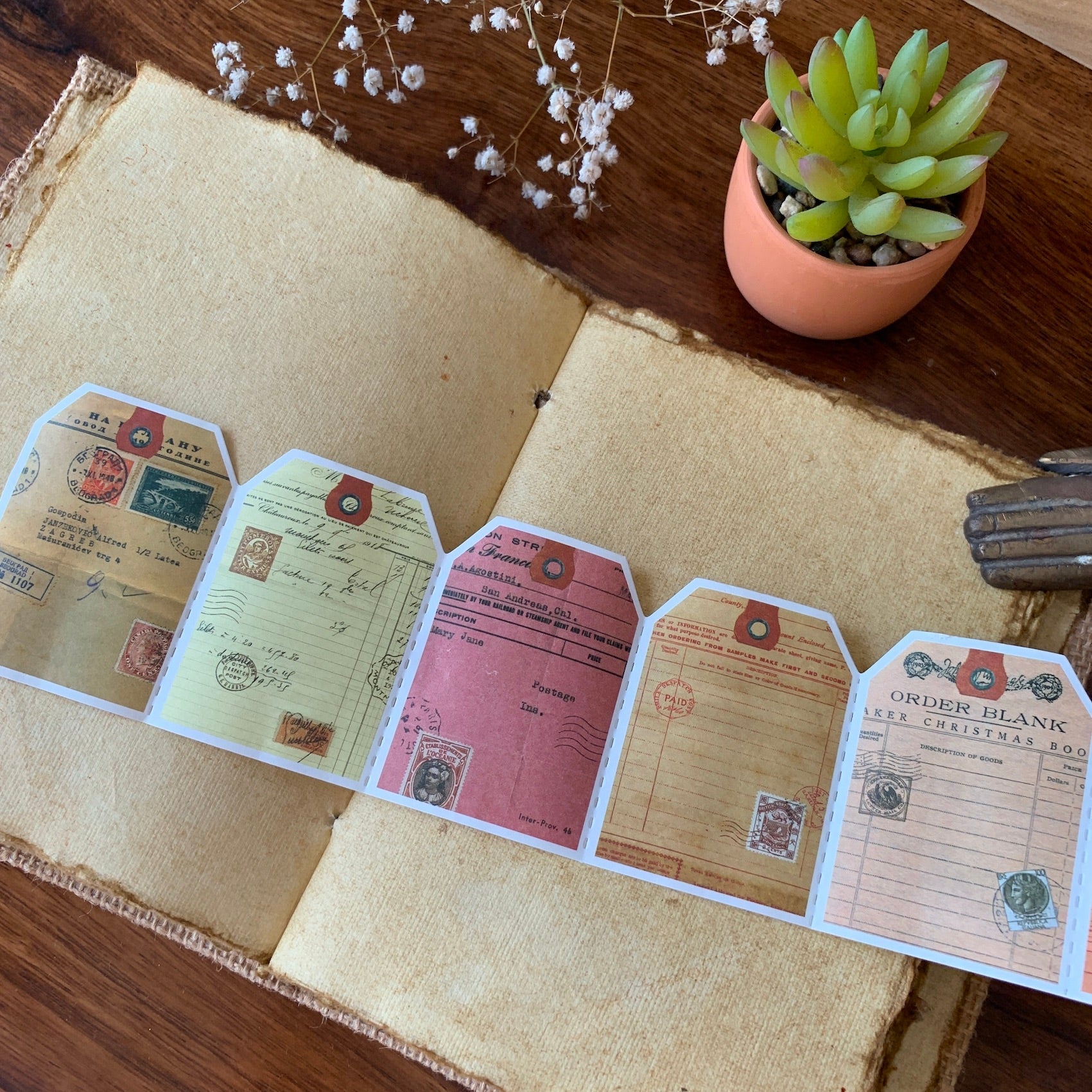 Aesthetically vintage receipt paper tags are a beautiful addition to your journal spreads. These come as a roll and are perforated so you just have to tear the design out and paste it.