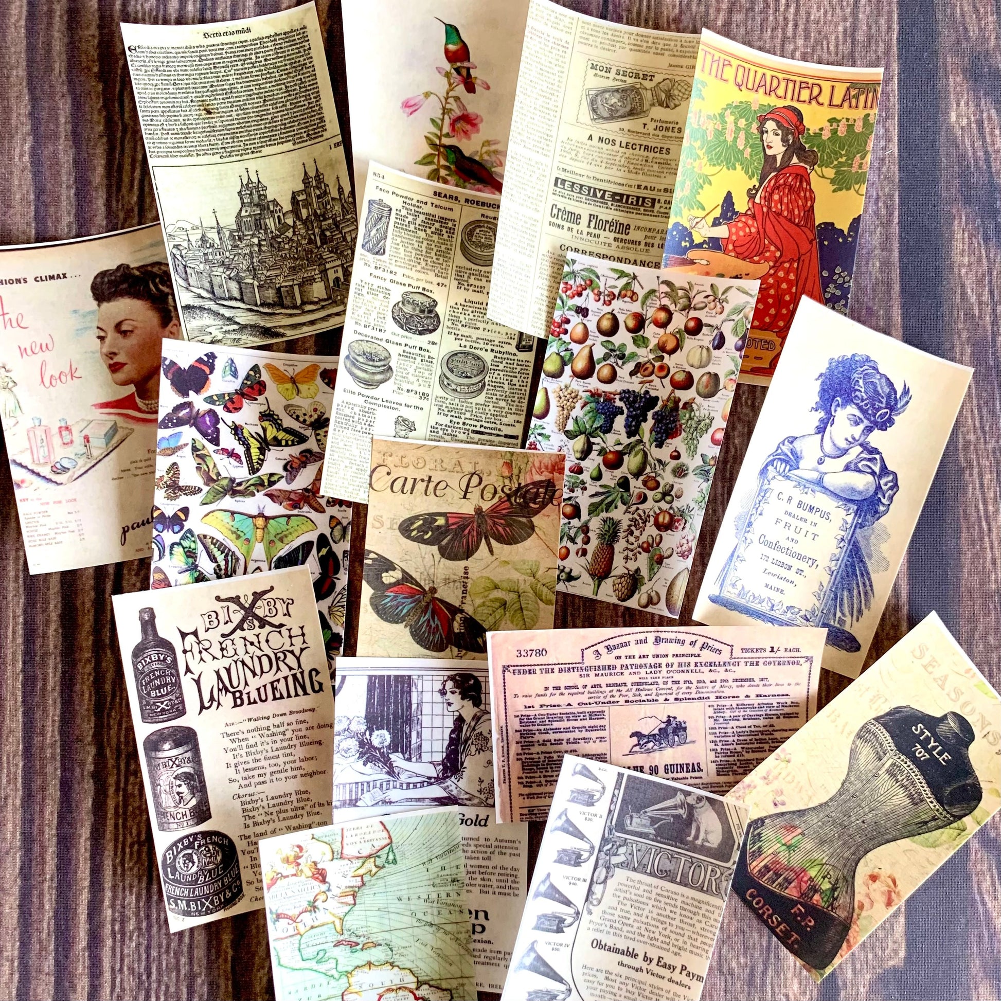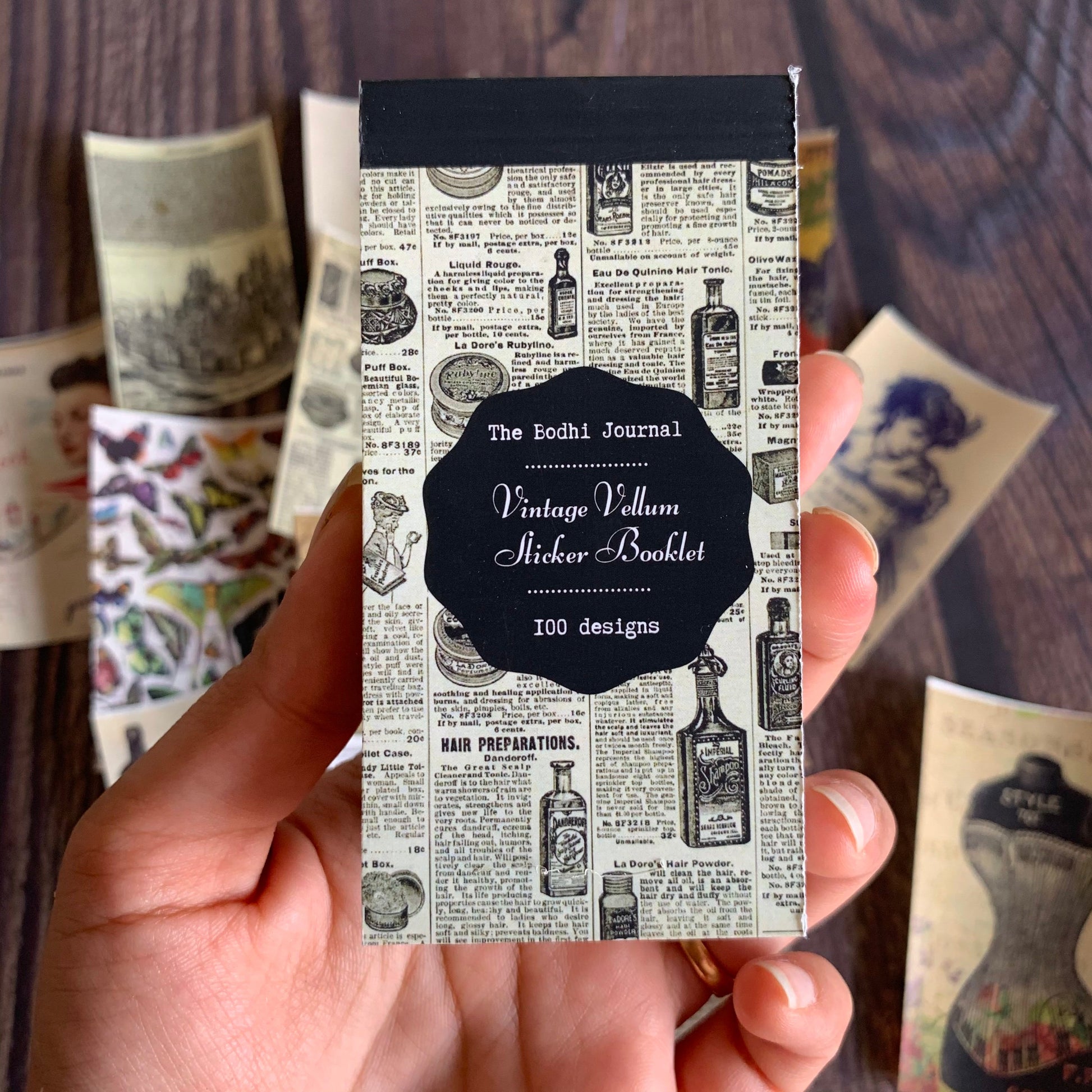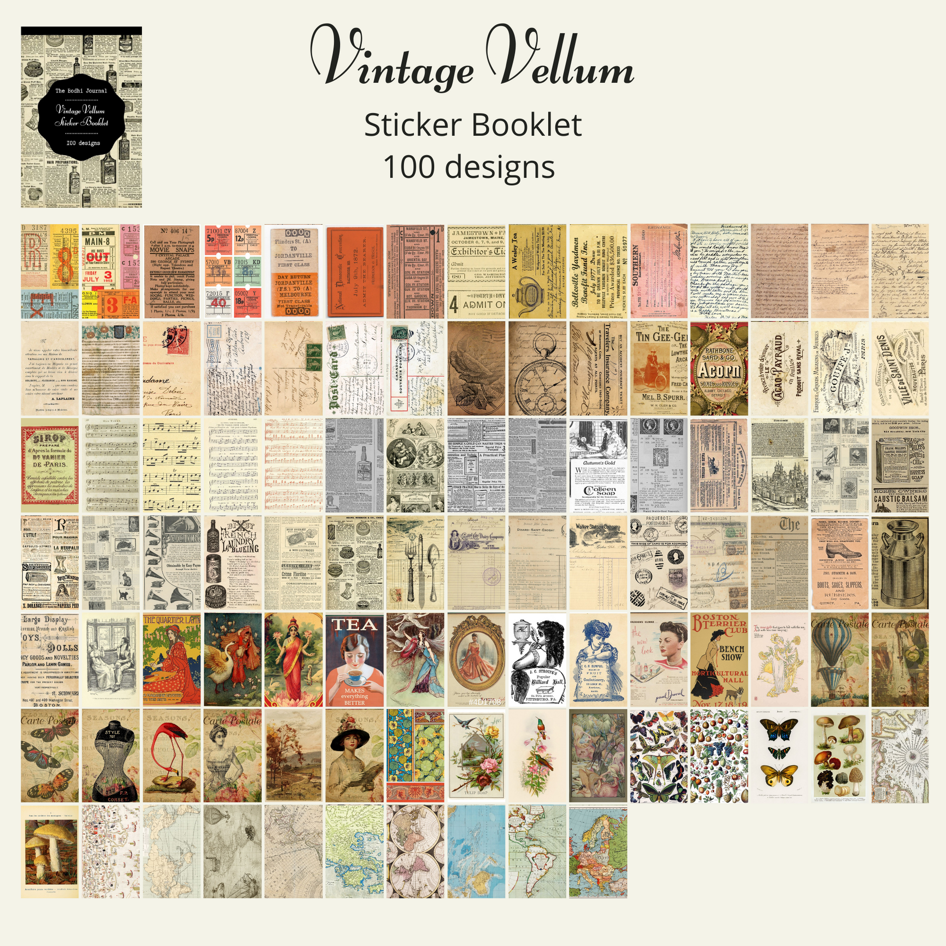 A booklet of vintage designs on vellum sticker paper, the translucent paper gives a beautiful matte finish and elevates your journal pages. The vintage designs are versatile with themes like vintage letters and postcards, advertisements, maps, collages and botanicals.