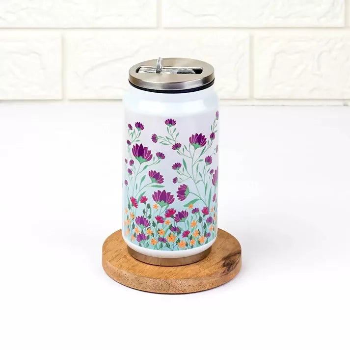 The Violet Grace Steel Can features dainty floral illustrations mimicking a lovely field of flowers. This can is crafted with high quality 304 grade double walled stainless steel interior to keep hot drinks hot or cold drinks cold for hours. The compact size of this can makes it easy to travel with your hot or cold beverages.